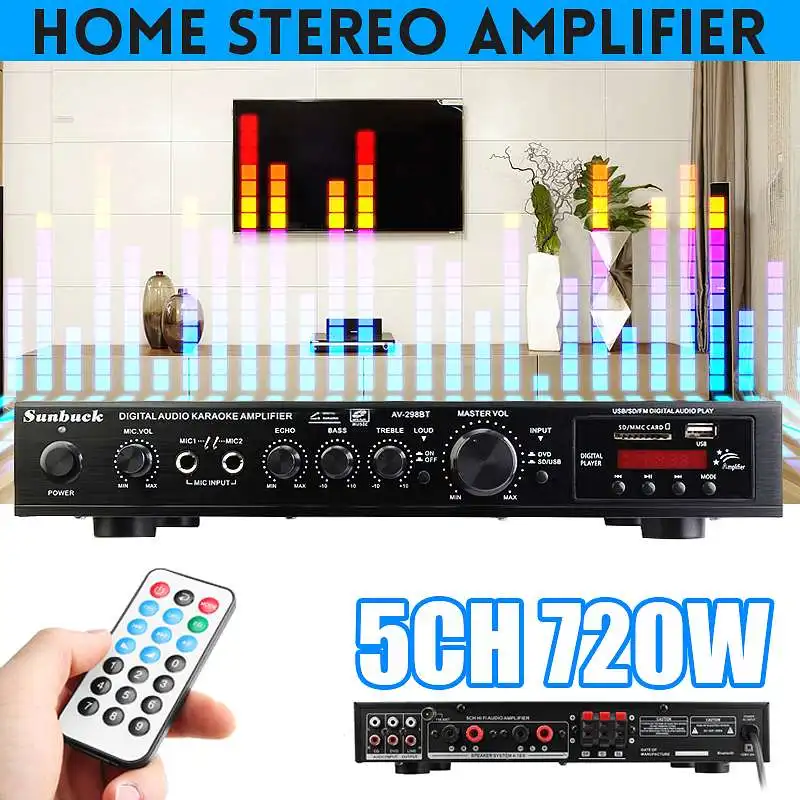720 Вт 5 канал Bluetooth Hi-Fi стерео усилитель светодиодный цифровой Караоке Проекторы для домашнего кинотеатра усилитель аудио передатчик для дома Кино