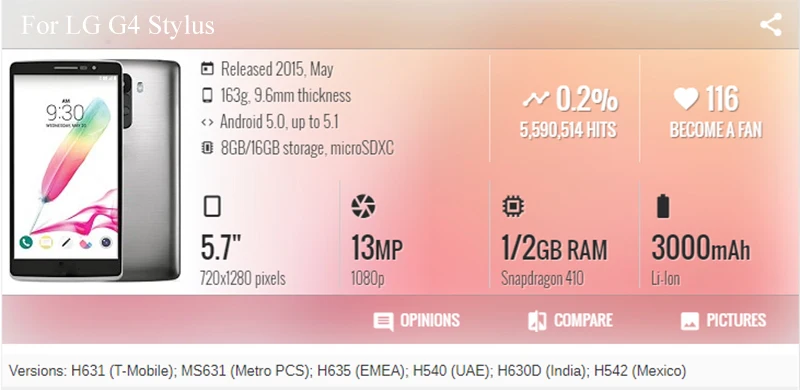 Номер моделиG4 stylus /H540/H542/H630/H631/H634/H635/LS770/G stylo