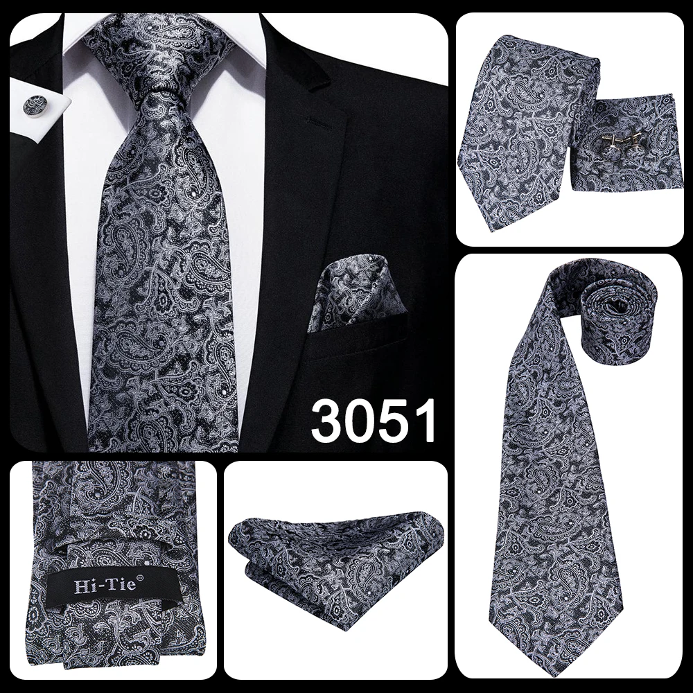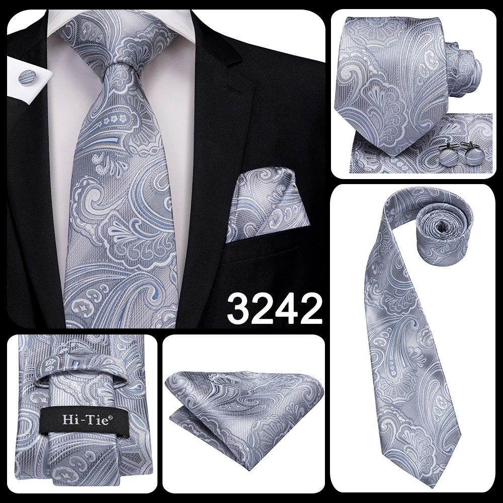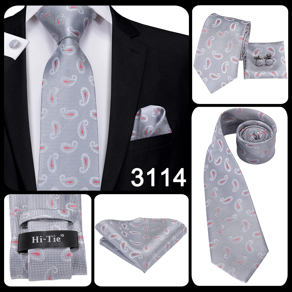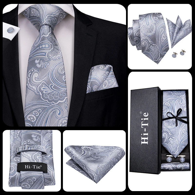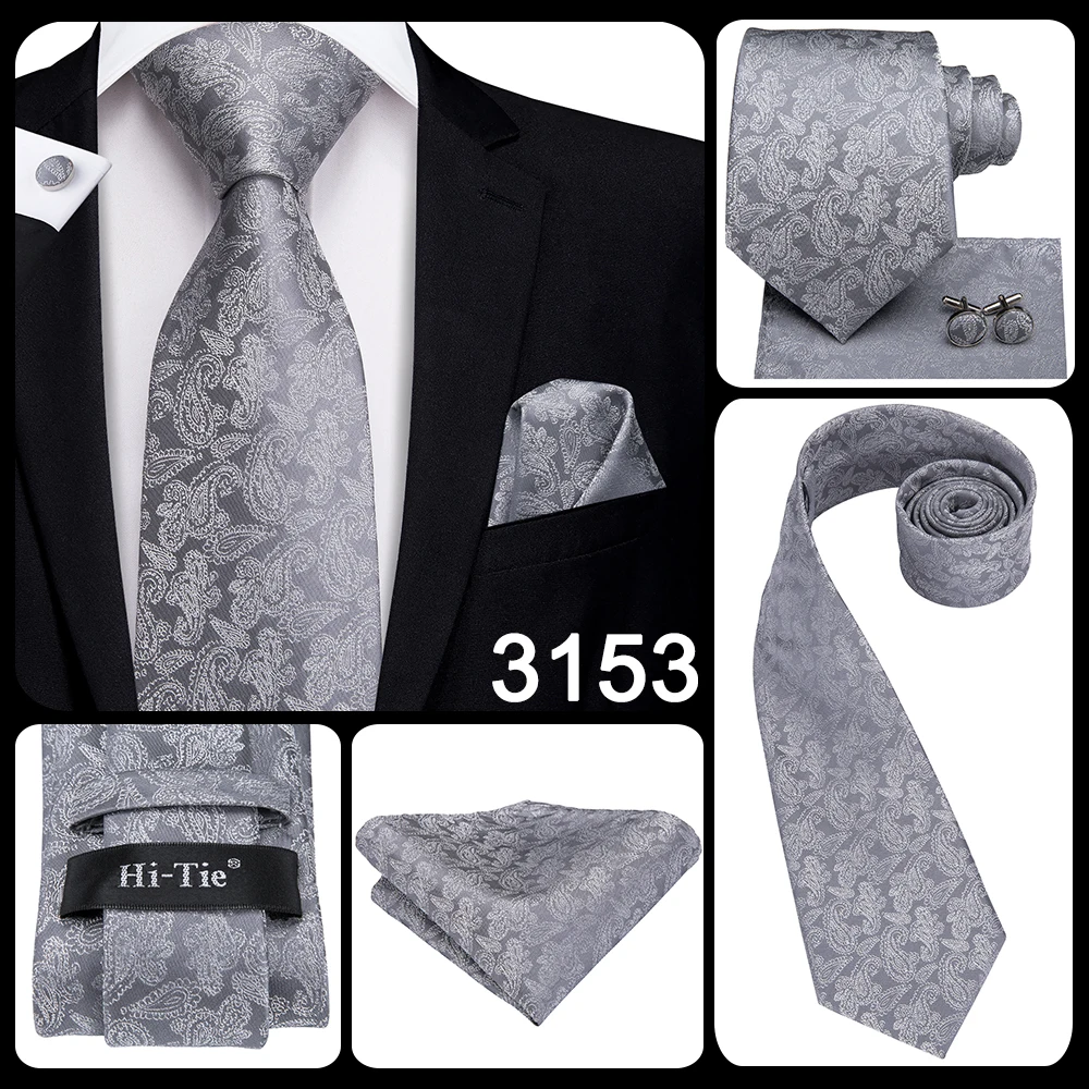 Серый однотонный подарок с узором пейсли, мужской галстук, шелковый Свадебный галстук Gravata для мужчин, набор запонок, модный дизайнерский бизнес, Прямая поставка