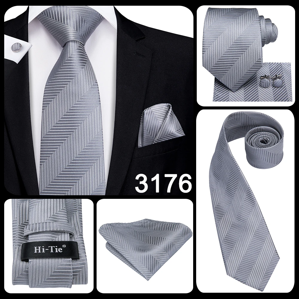 Серый однотонный Пейсли подарок мужской галстук Gravata Шелковый Свадебный галстук для мужчин Hanky запонки набор модный дизайнерский бизнес Прямая поставка