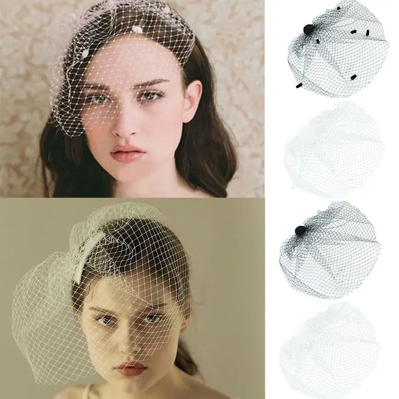 Винтажная элегантная женская свадебная вуаль с сеткой в горошек, большая сетчатая заколка, головной убор, вуаль для лица, аксессуары для волос