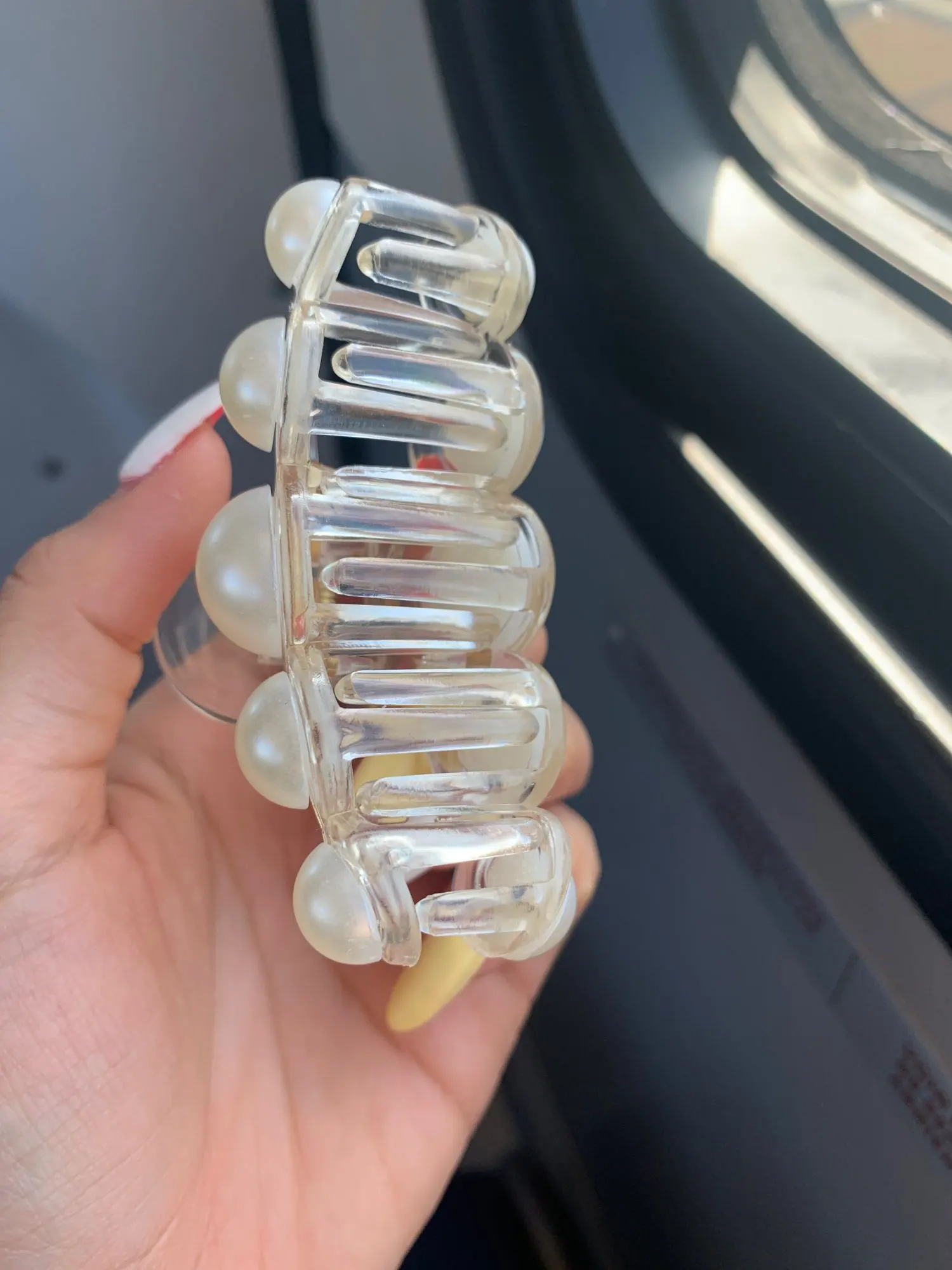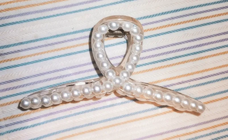 жемчуг не белый пришел, а беж или айвори, и ещё немного царапанный (. Но в общем заколка смотрится хорошо