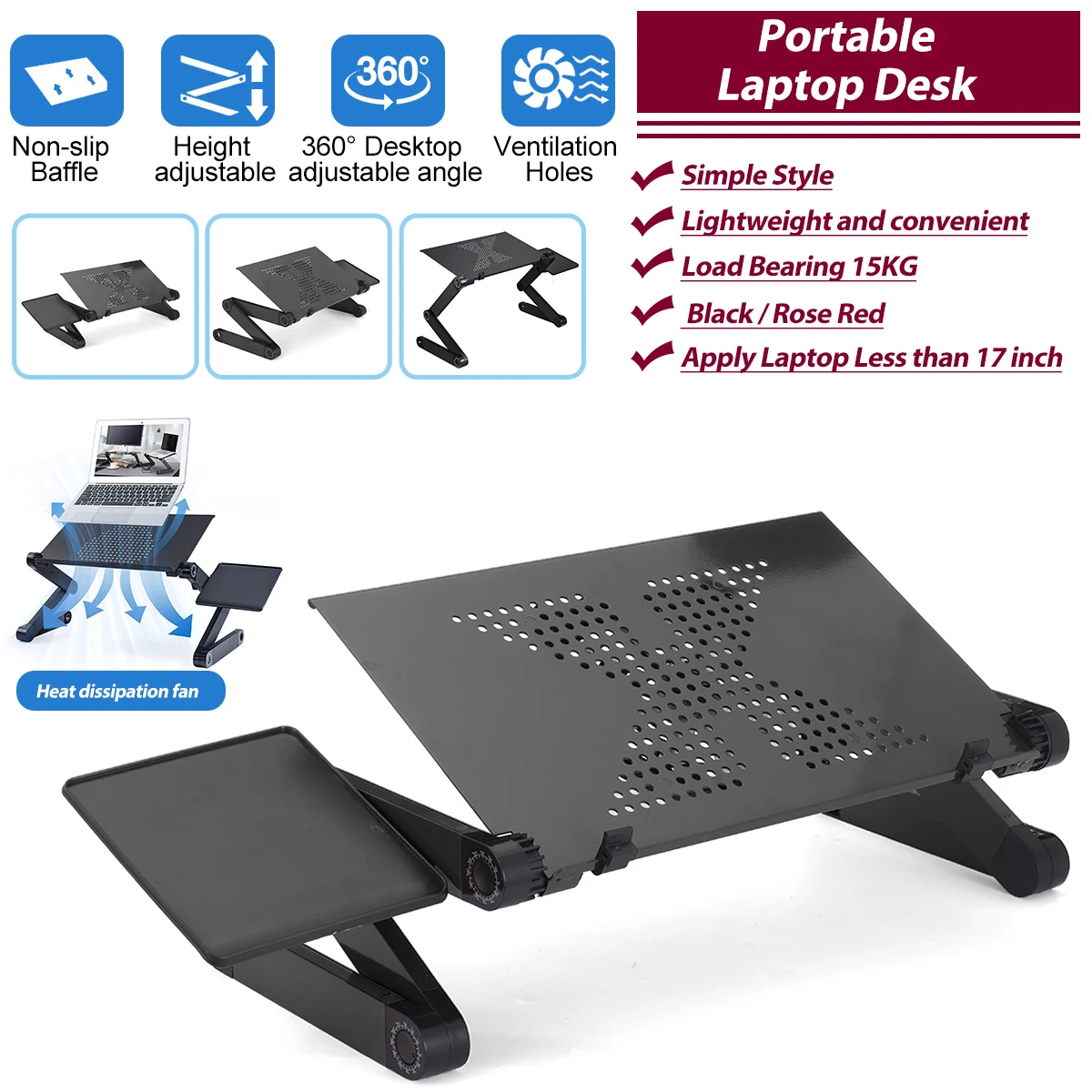 Складной столик для ноутбука компьютерный стол, алюминиевый, для кровати, вращение на 360 градусов, многофункциональный, портативный, 54*27*4,6 см