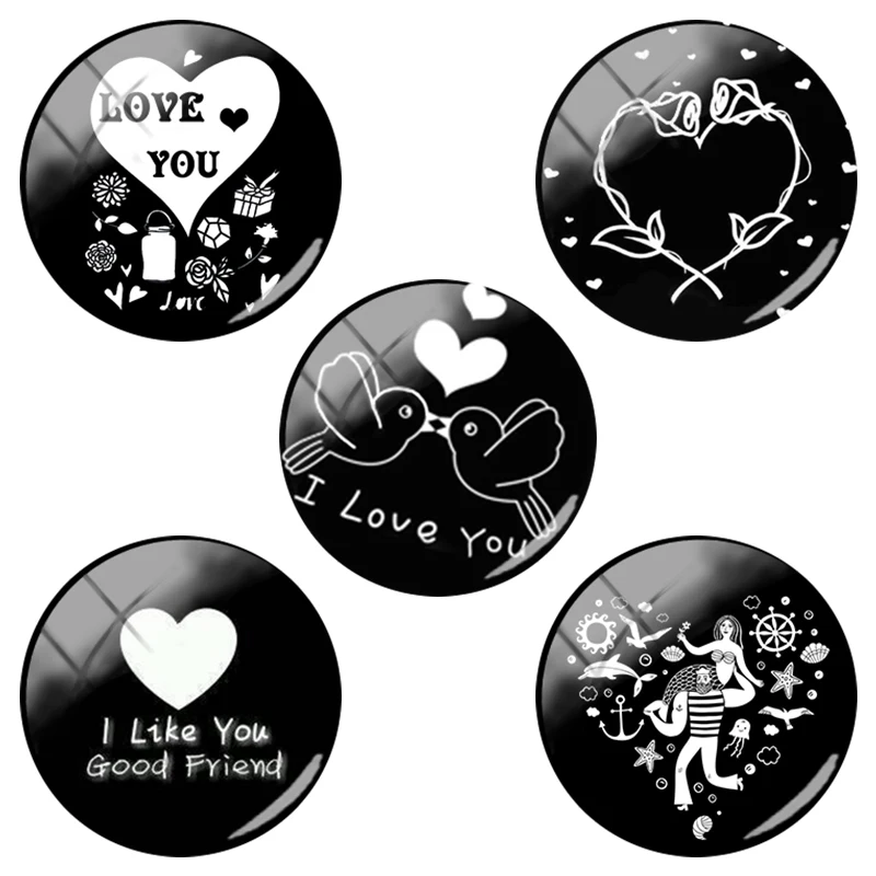 TAFREE черный фон милый рисунок сердца 12-25 мм круглый сделай сам украшение стекло ювелирные аксессуары для хорошего друга подарки