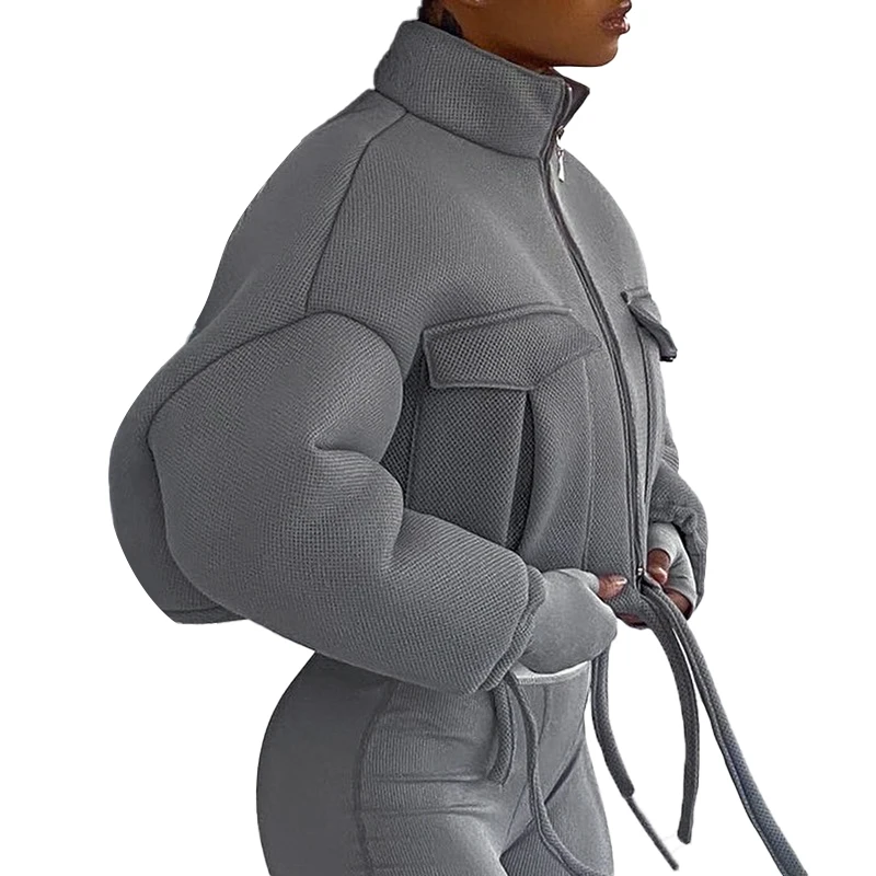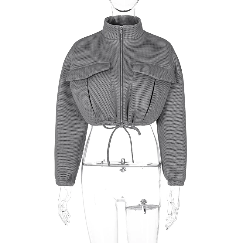 Hugcitar 2020 длинный рукав на молнии водолазка карман Мешковатые куртки осень зима Женская мода уличная повседневная одежда