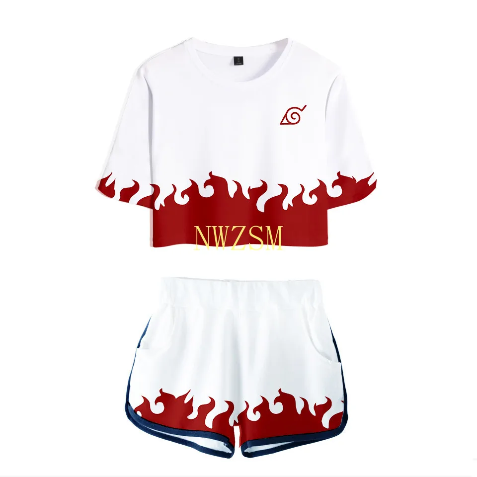 Женский спортивный костюм с 3d принтом Какаси, летний сексуальный комплект из двух предметов, Модный укороченный топ и шорты в стиле Харадзюку, большие размеры