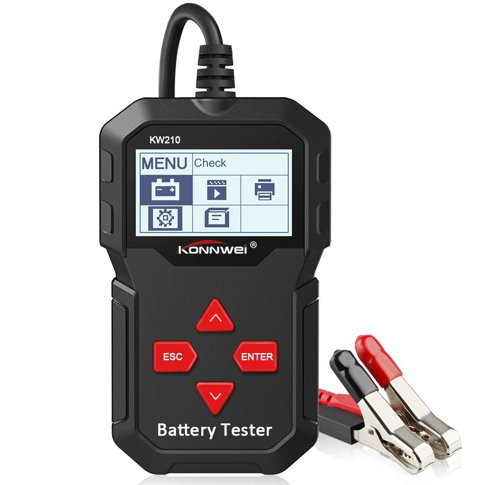 KONNWEI KW210-это новый аккумулятор-тестер, обновленный от старого классического тестера с подсветкой на рынке, направленный на быстрый и точный контроль состояния здоровья батареи, а также проверка рабочего состояния генератора. Это профессиональный диагностический инструмент транспортного средства для проверки проблем с системой батареи с помощью инструмента мониторинга напряжения с графическим изображением, с цветным экраном и уникальным дизайном узора, бесплатным обновлением в течение всего срока службы, KONNWEI KW210-идеальный инструмент для тестирования батареи для вашей работы и семьи.