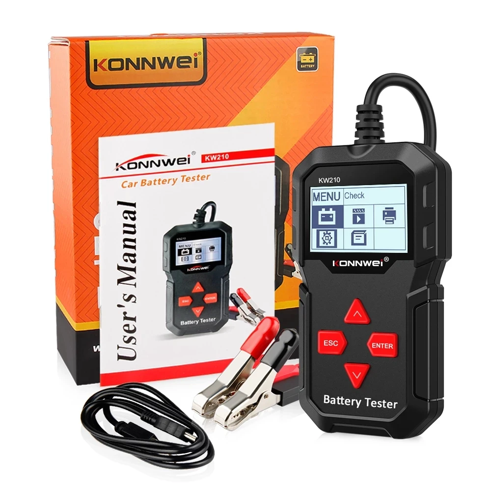 Тестер автомобильного аккумулятора KONNWEI KW210, автоматический умный анализатор автомобильного аккумулятора 12 В, диагностические инструменты для запуска аккумулятора от 100 до 2000CCA