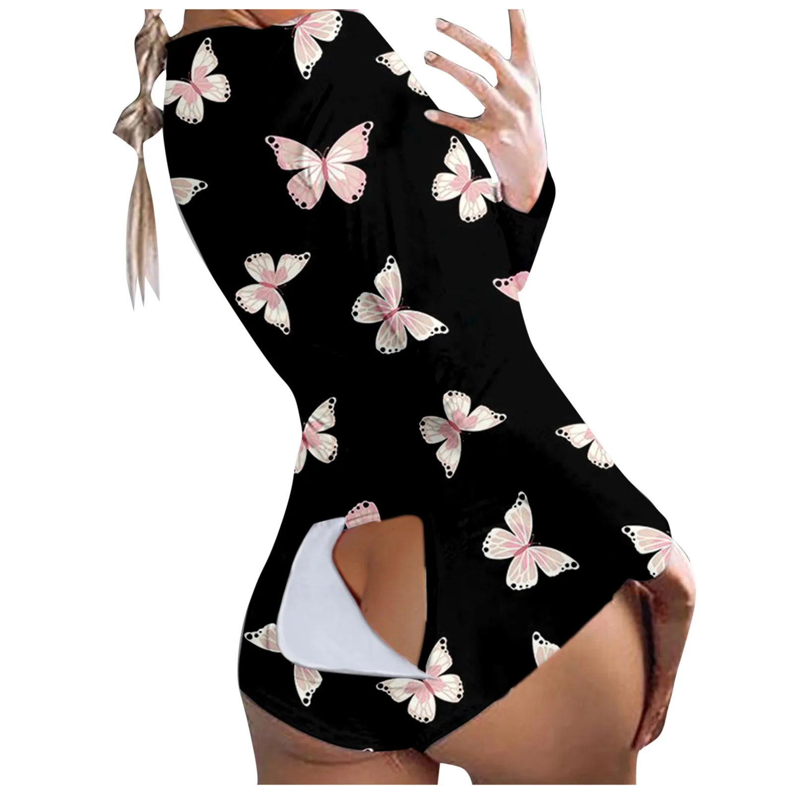 Комбинезон женский короткий на пуговицах, пикантный ромпер с клапаном и принтом бабочки, для взрослых, размера плюс, вечевечерние, клуба