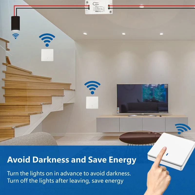 Особенности: 1: панель управления беспроводным переключателемФункция--Если у вас нет Wi-Fi или смартфона, вы можете напрямую использовать беспроводную панель для управления; --Избегайте темноты и экономьте энергию.