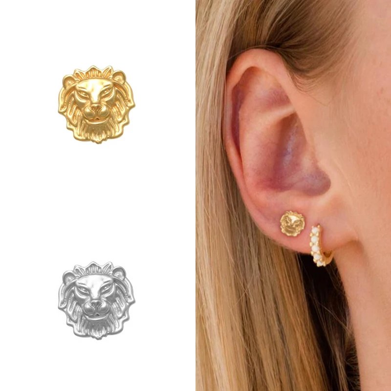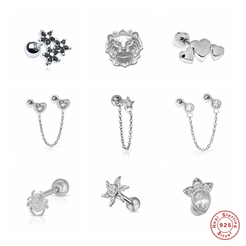 Стерлинговое Серебро 925 пробы, классная голова льва, серьги-гвоздики с животными в форме паука для женщин, циркониевые серьги в форме сердца, серьги для пирсинга