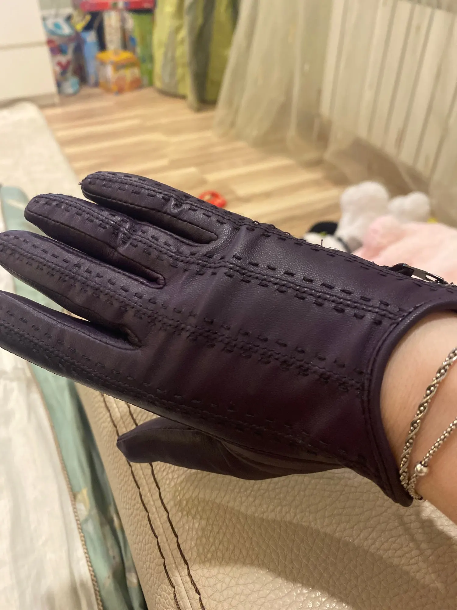 Перчатки понравились, именно такие хотела. Размер соответствует описанию в размерной сетке, но я бы не советовала покупать тем, у кого длинные пальцы. У меня рука маленькая и мне длина впритык, в остальном всё супер!!! Доставили за 3 недели, с продавцом не общалась