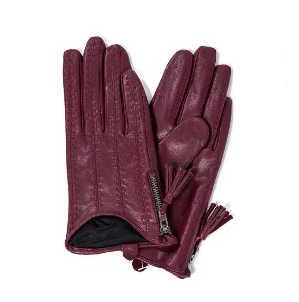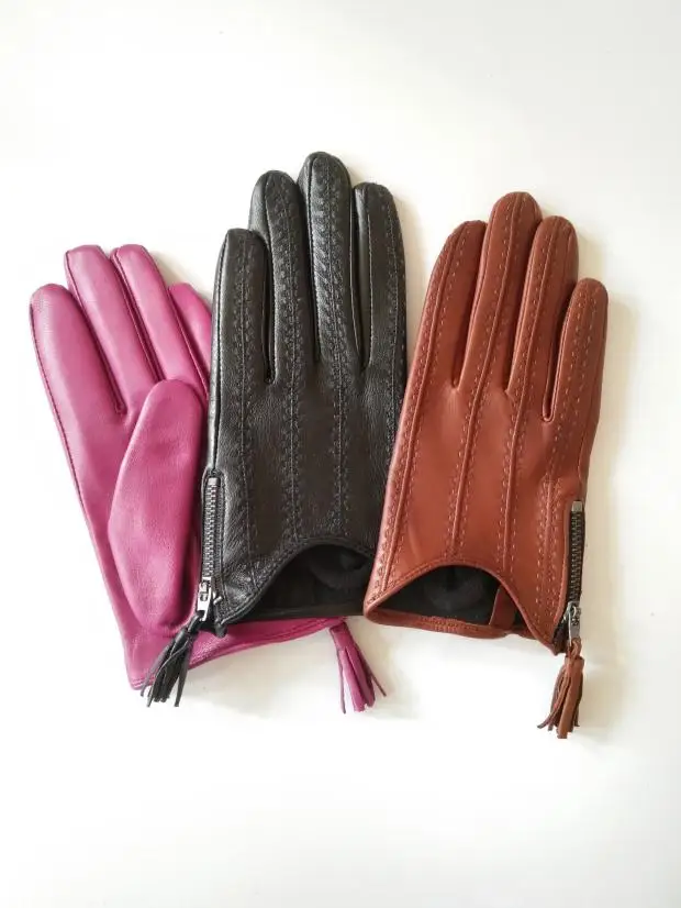 Women'a натуральный из овечьей кожи с бахромой и молнией; Водительские перчатки женские модные туфли-лодочки в стиле натуральная кожа перчатки для мотоцикла, R3372