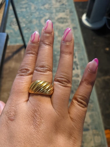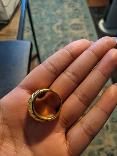 Люблю это кольцо! Очень симпатичный. Действительно тяжелый. Использовали его во время мытья рук и никаких следов ржавчины или выцветания. Отличное качество. Быстрая доставка. Убедитесь, что измерили пальцы, чтобы получить точный размер.
