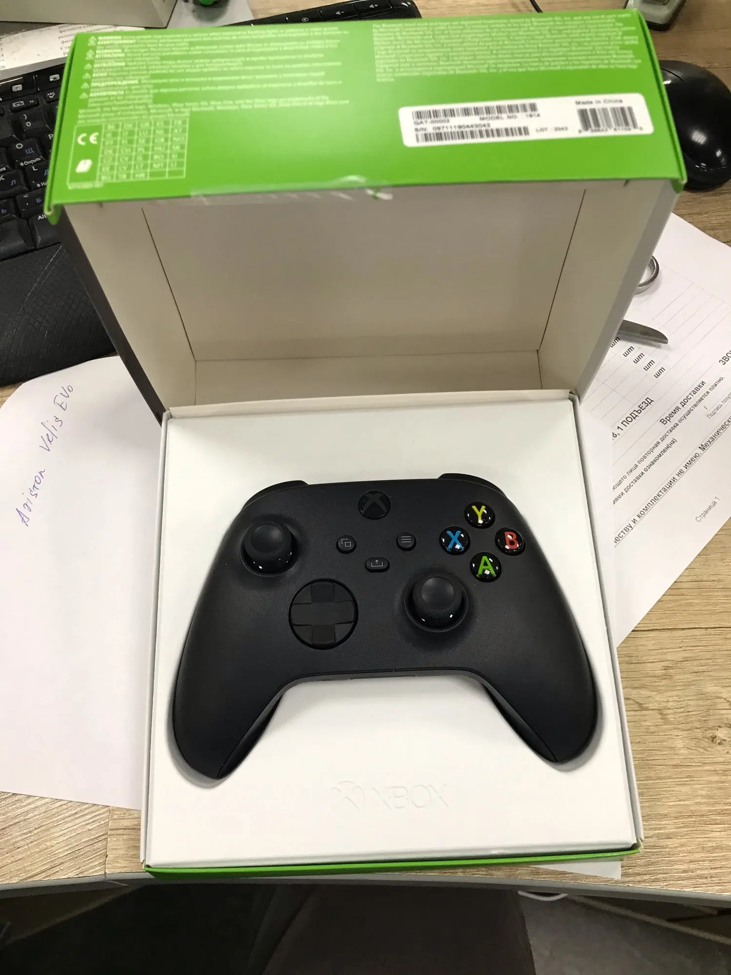 Быстрая доставка (пермский край, 4 дня). Хорошая упаковка. В комплекте Game pass. Качество великолепное. Подключился к ПК замечательно. По ощущениям (вкусовщина конечно,но ...) сделан чуть лучше чем от One. Задняя поверхность - очень приятно ощущается. Вибро - мощное.