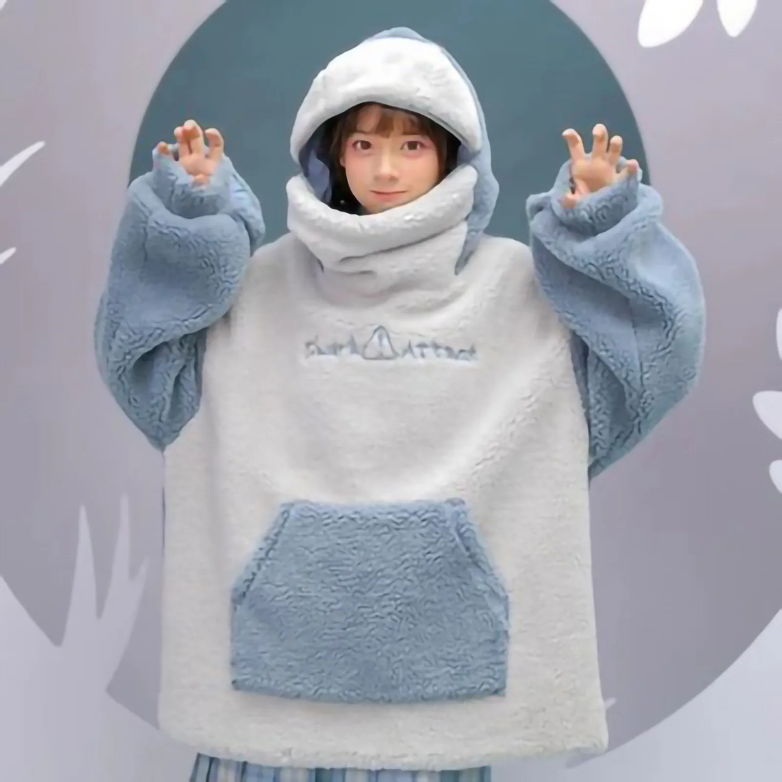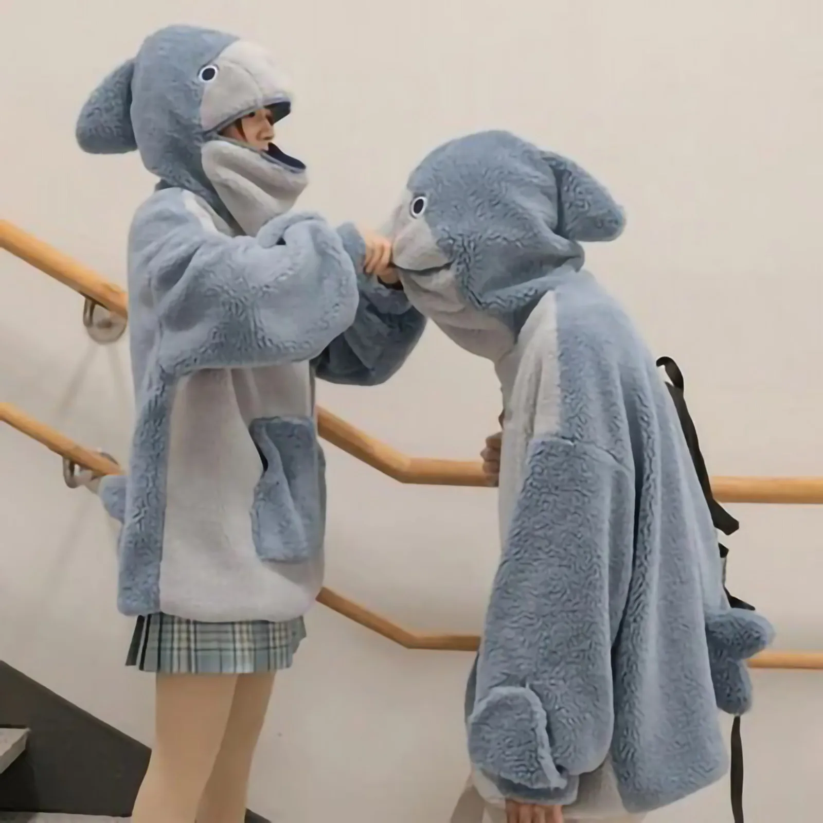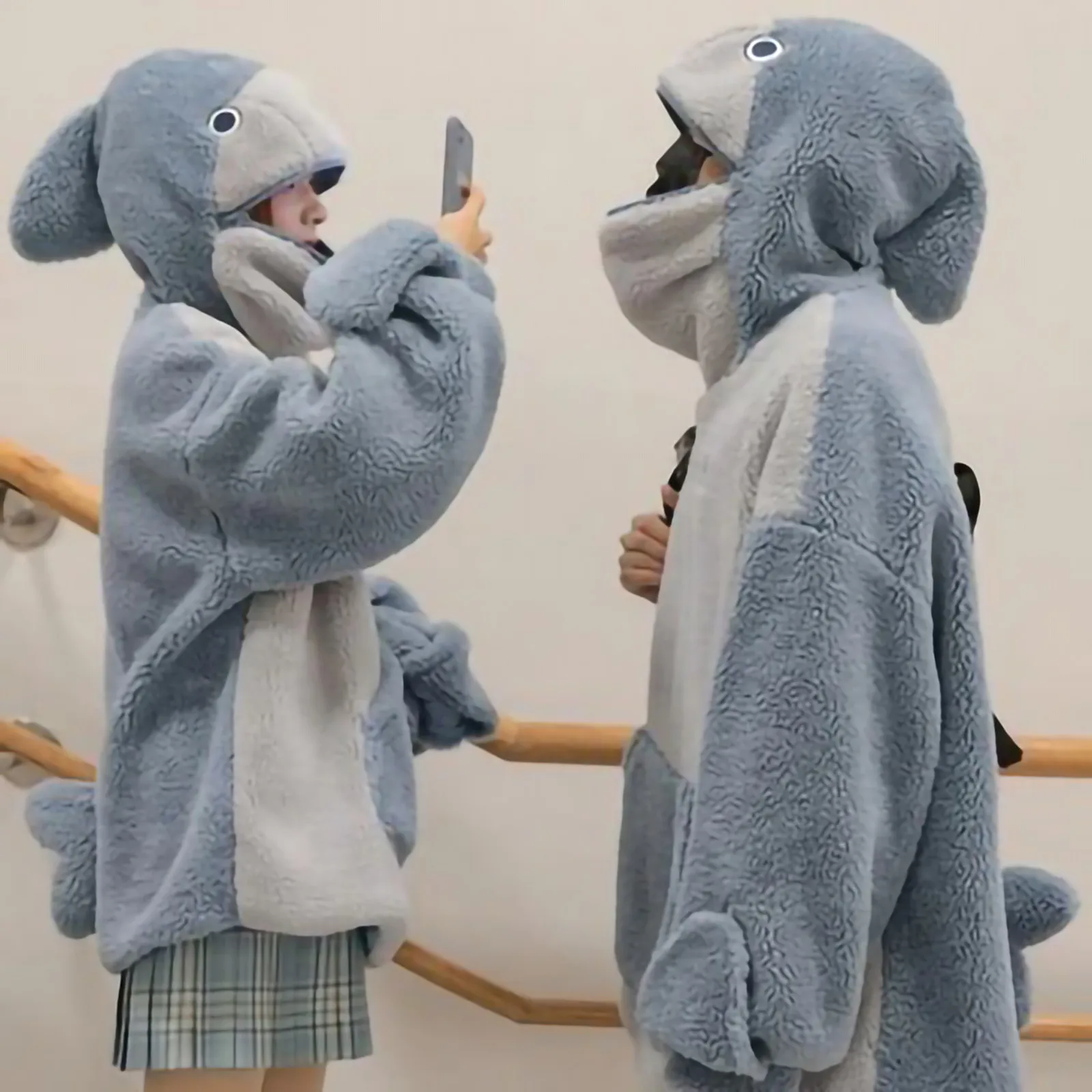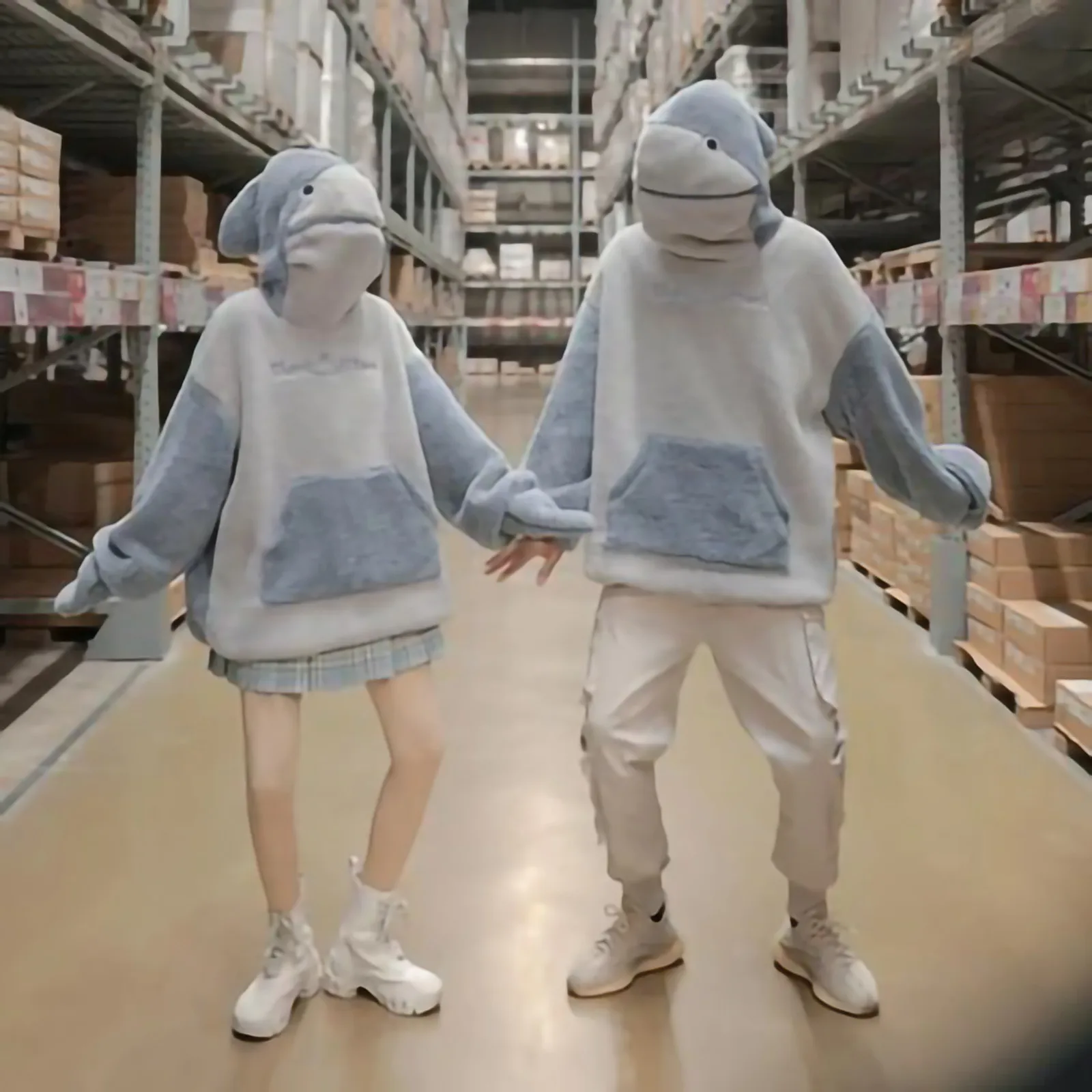 Толстовка унисекс с капюшоном и рисунком акулы; Толстовка с длинными рукавами и карманом для ношения; Топы