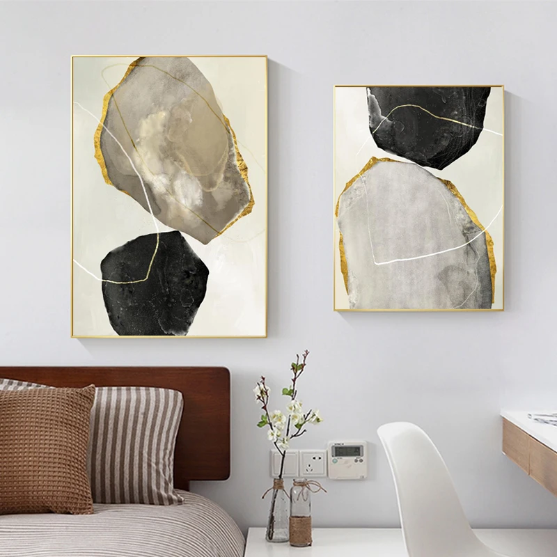 Декоративная картина в скандинавском стиле с абстрактным золотым ли...