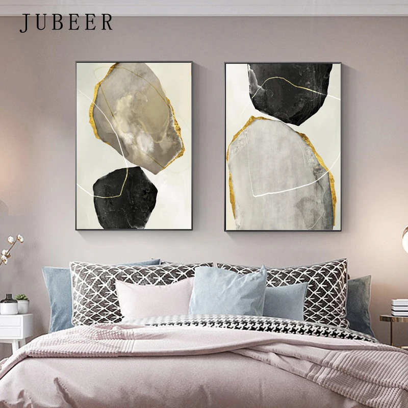 Холщовая картина в виде золотого листа, настенные картины черного и...