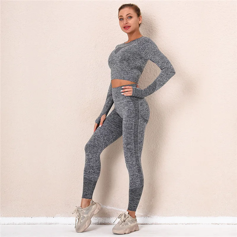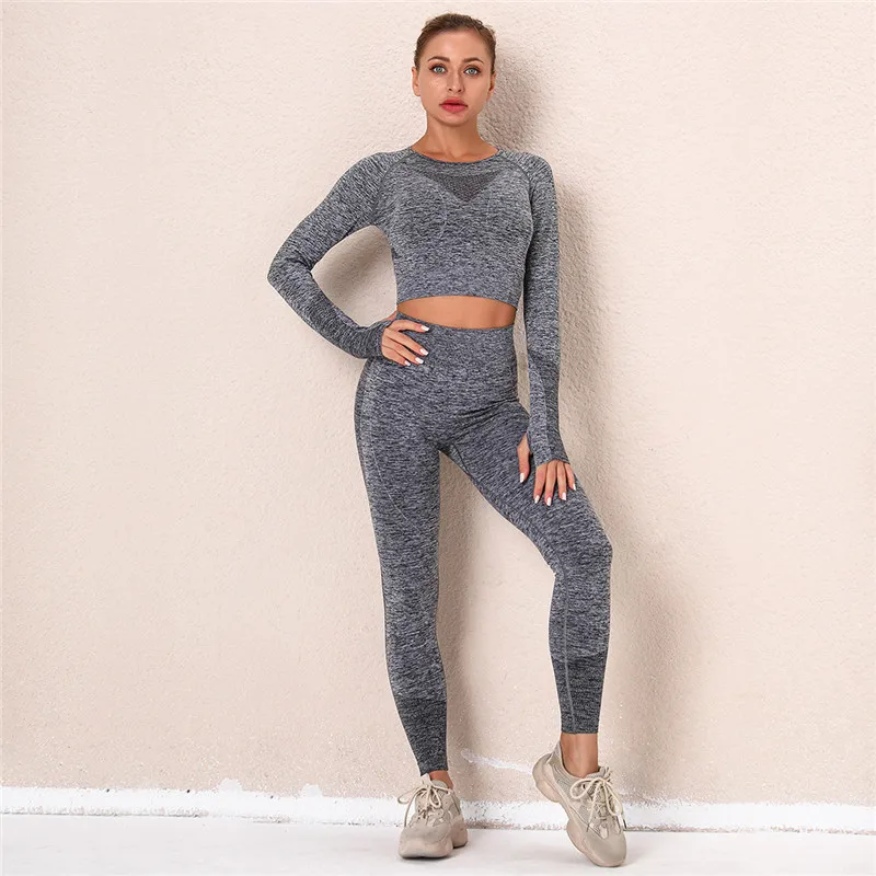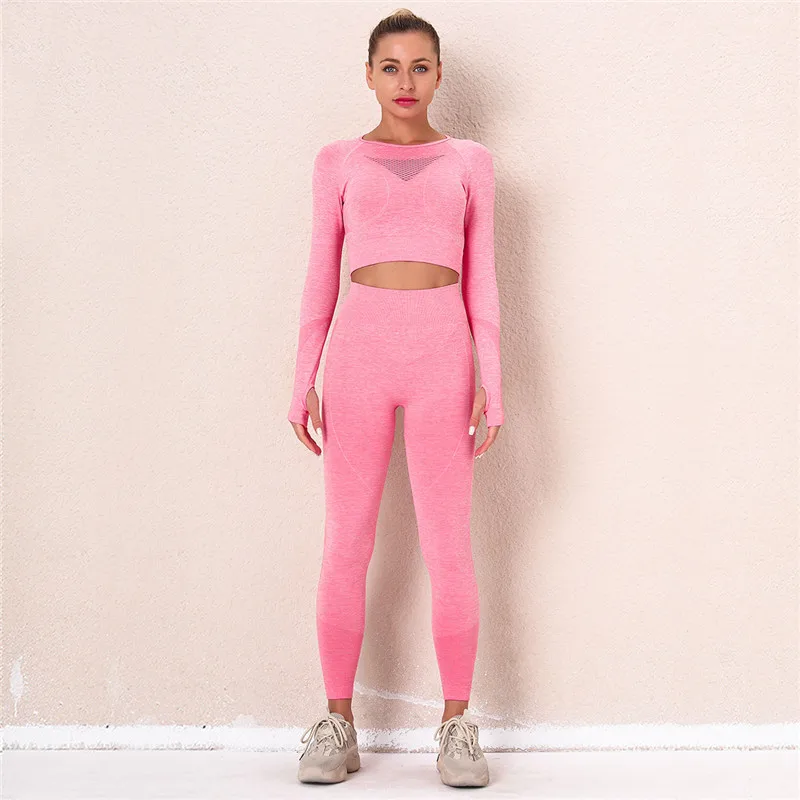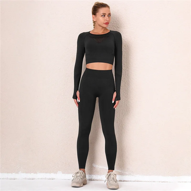 Женский сетчатый бесшовный комплект из 2 предметов, одежда для спортзала, леггинсы с высокой талией для фитнеса и рубашки, спортивный костюм, женский спортивный костюм с длинным рукавом, одежда для активного отдыха