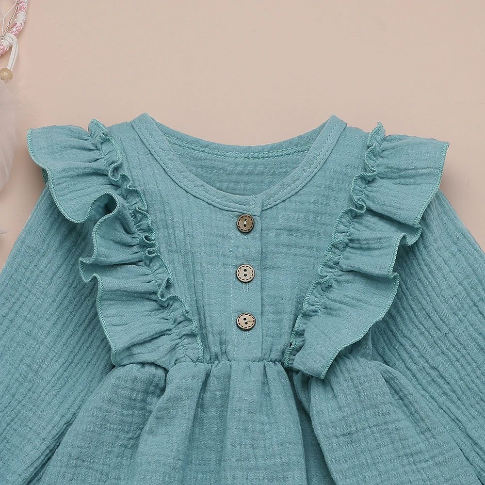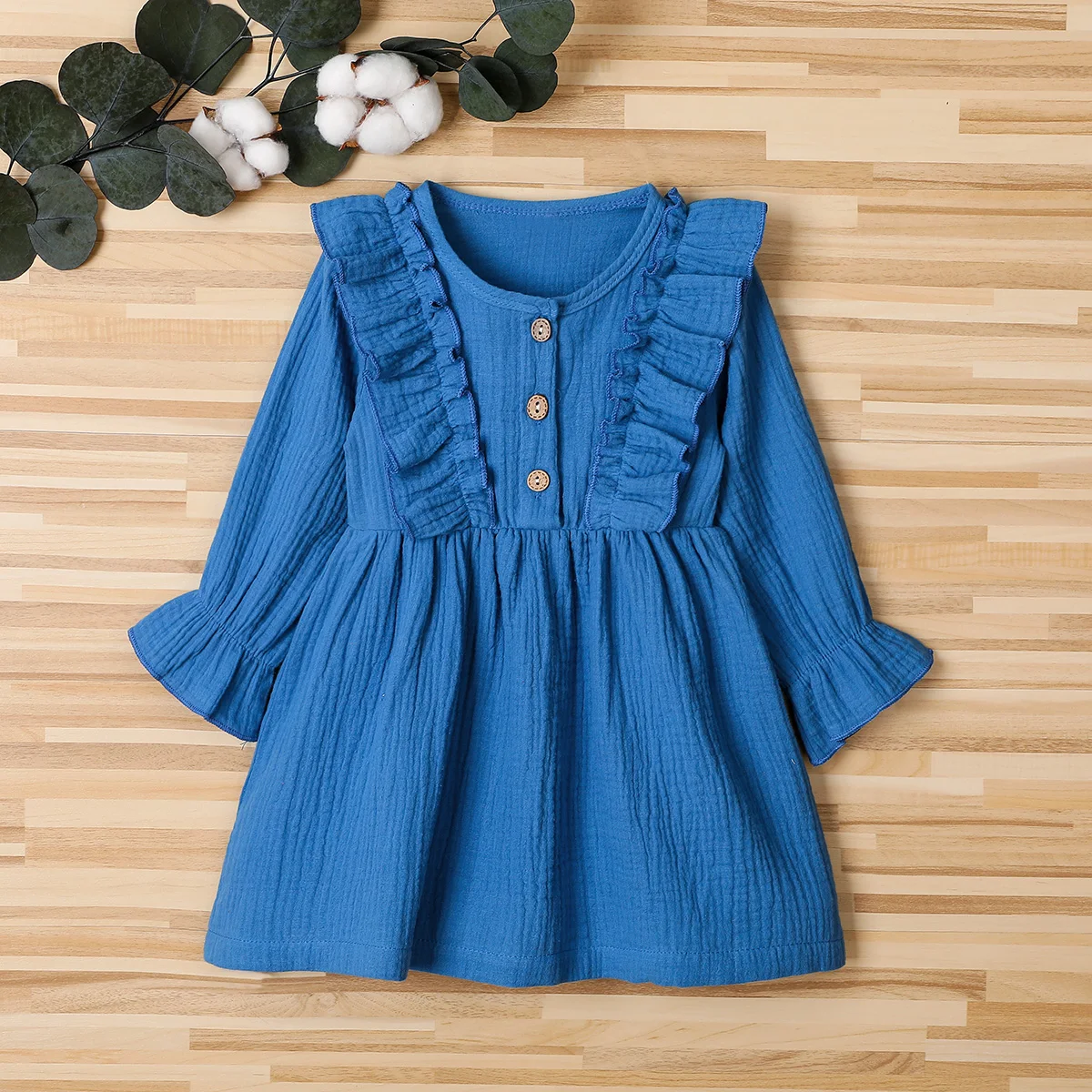 Льняное платье, одежда для детей, кавайная принцесса, детская одежда для девочек, голубые платья, повседневные платья с рюшами, Топ 2 aos