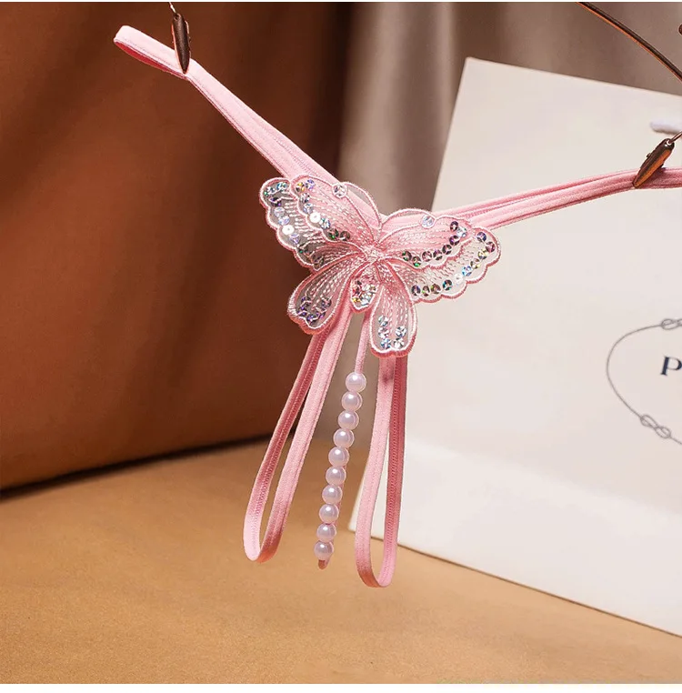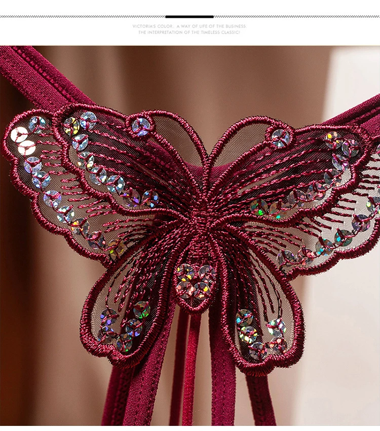 Вышивка Бабочка с блестками трусики с жемчужинами сексуальное женск...