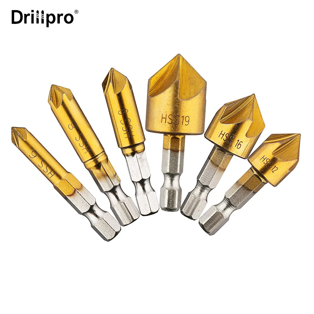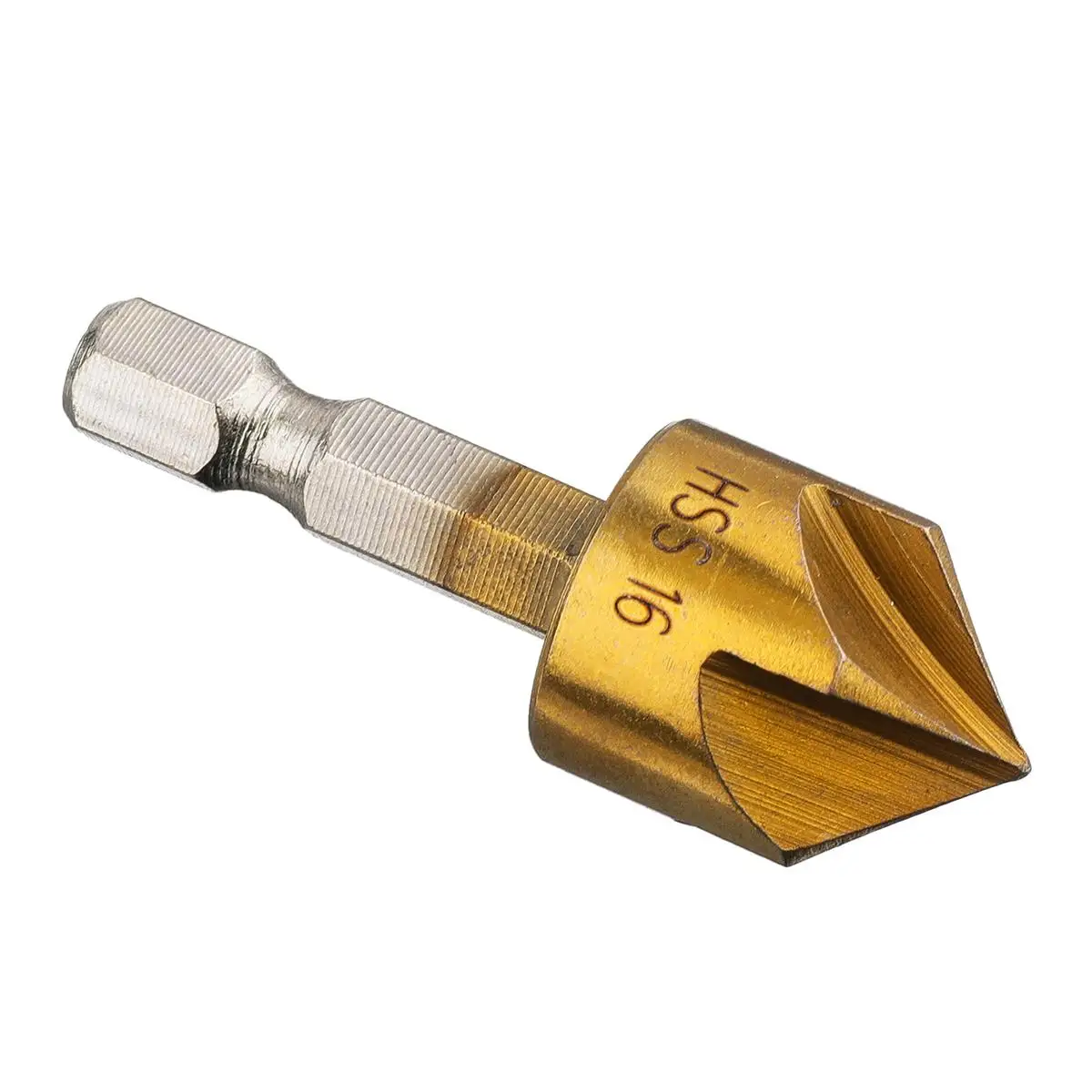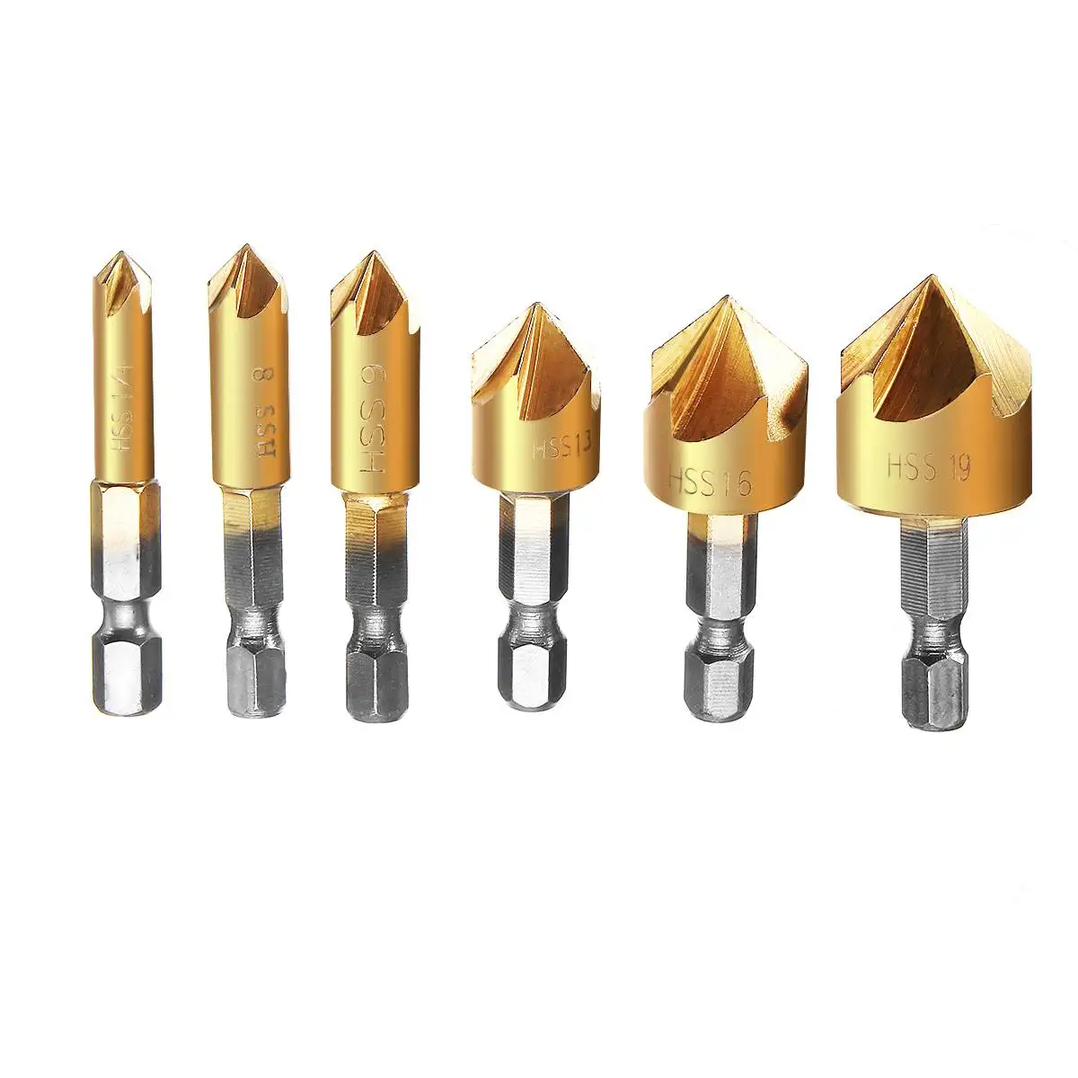 Зенкер-фаска из быстрорежущей стали с титановым покрытием, 6 шт.лот, 6-19 мм, 5 канавков, 14 дюйма, аксессуары для электроинструмента