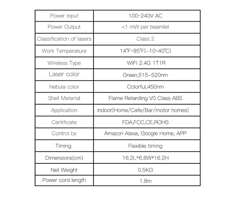 1 * Звездный проектор, 1 * USB кабель для передачи данных, 1 * Руководство пользователя на английском языке
