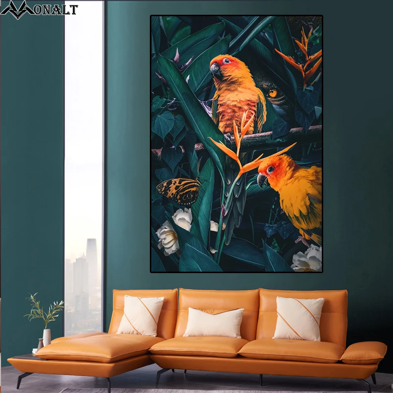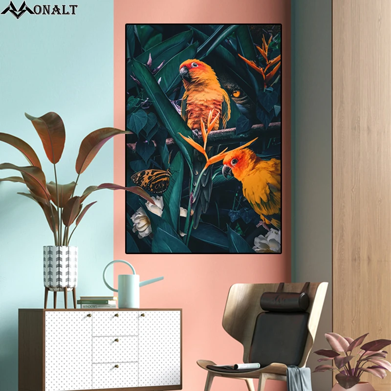 Светильник, Роскошные цветы, попугай, плакаты, холст, печать, HD изображение животных, простые, современные, для гостиной, настенные, декоративные картины