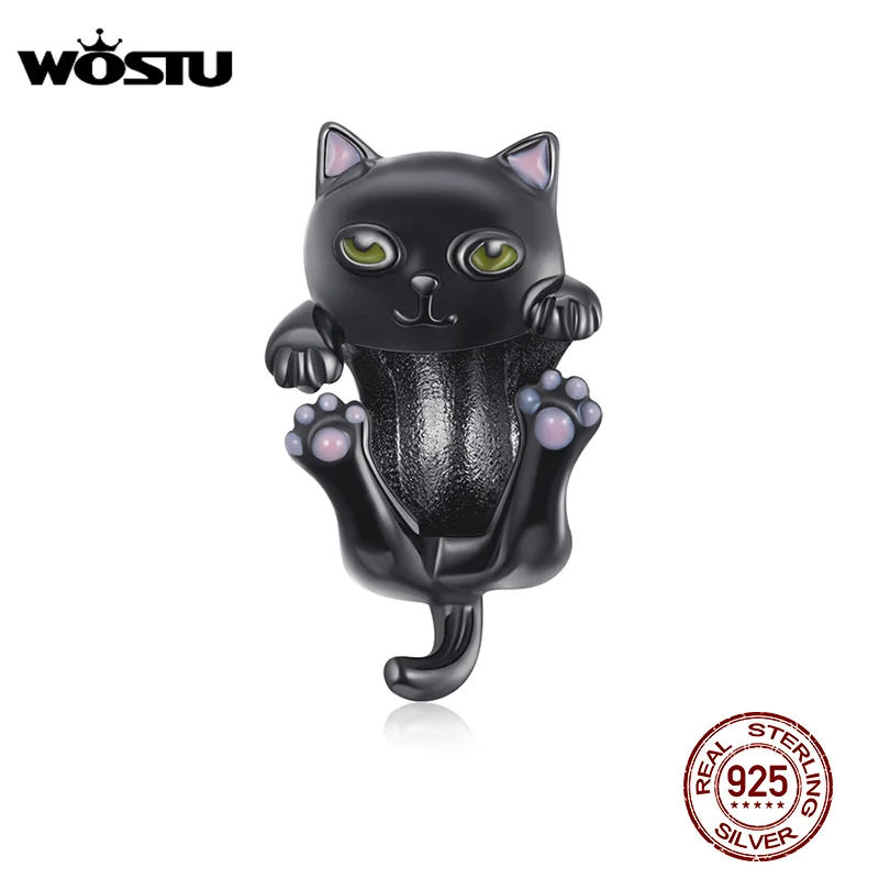 Бусины кошка из серебра 925 пробы с мультяшными животными, EFC404