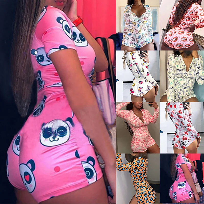 Пикантная Пижама-комбинезон для взрослых с принтом денег, пижама с длинным рукавом, женская одежда для сна, короткий комбинезон, комбинезон, нижнее белье, комбинезон для женщин