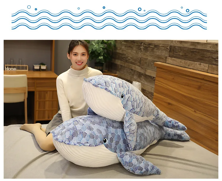 Плюшевая игрушка-Кит, 50-110 см, синее море, мягкая игрушка в виде ...