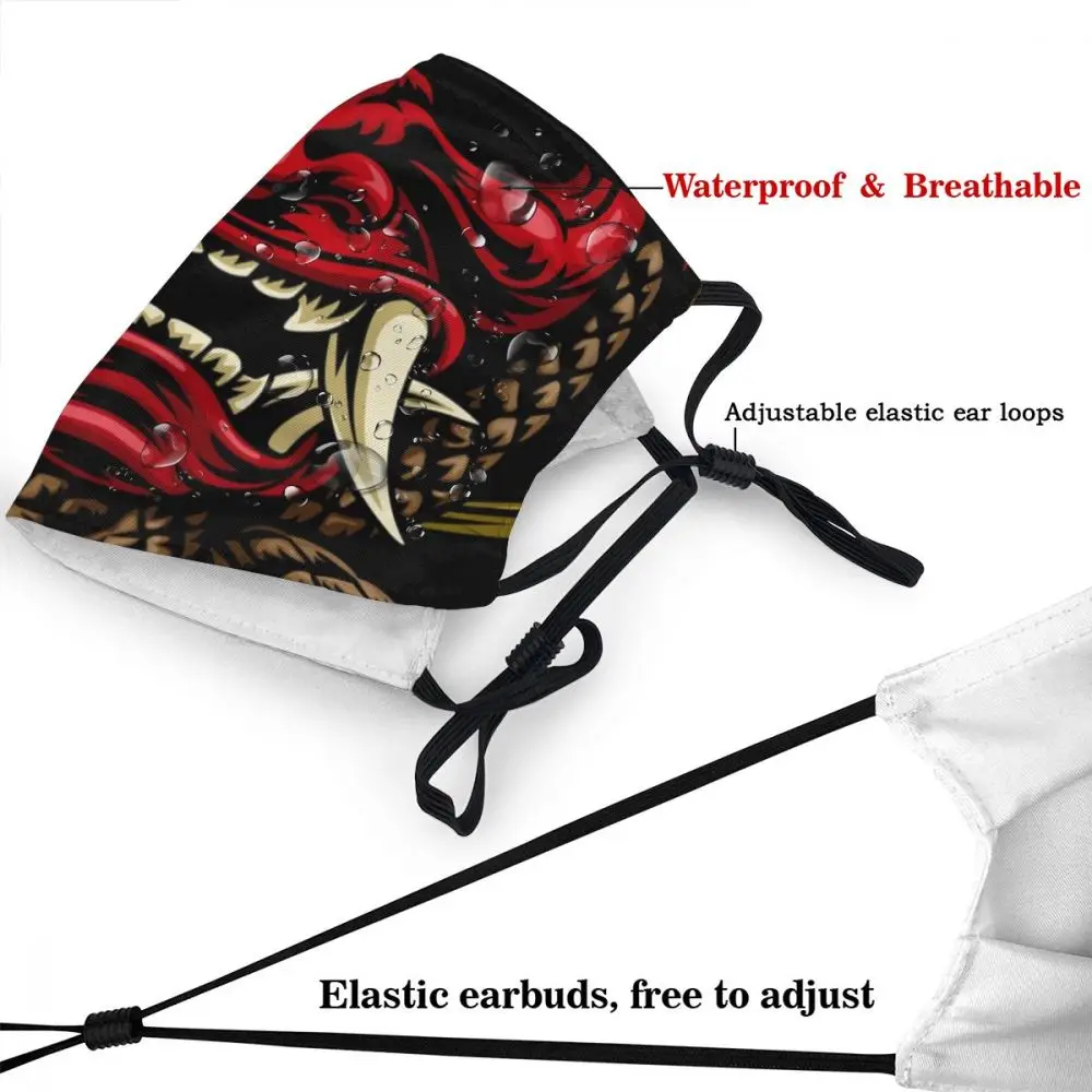 Маска для лица унисекс, смываемая, с изображением демона, японского самурая ронина, Пылезащитная маска, респиратор