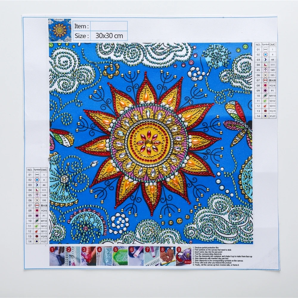 Алмазная живопись "сделай сам" 5D специальный Форма стразы, с изображением цветка мандалы, частично с алмазной С кристалалми и стразами Набор для рисования