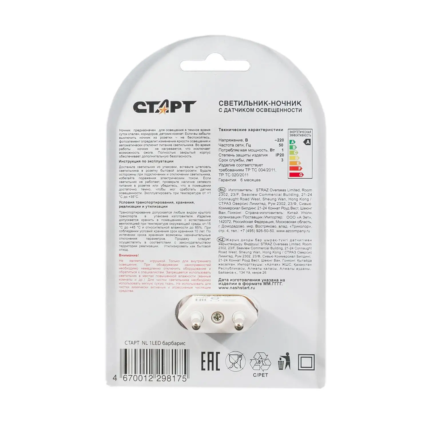 Безопасность• Гарантом абсолютной безопасности в светильниках СТАРТ NL 1LED «Барбарис» выступают всё те же светодиоды. Они не нагреваются, таким образом, исключён и малейший риск ожога.• Корпус в декоративном «цветочном» ночнике тоже весьма прочный – он изготовлен из уникального соединения металла и пластика. Так что случайные падения светильнику тоже не страшны.• Кроме этого изделие оснащено датчиком света, автоматически выключающем его, как только в помещении становится светло.