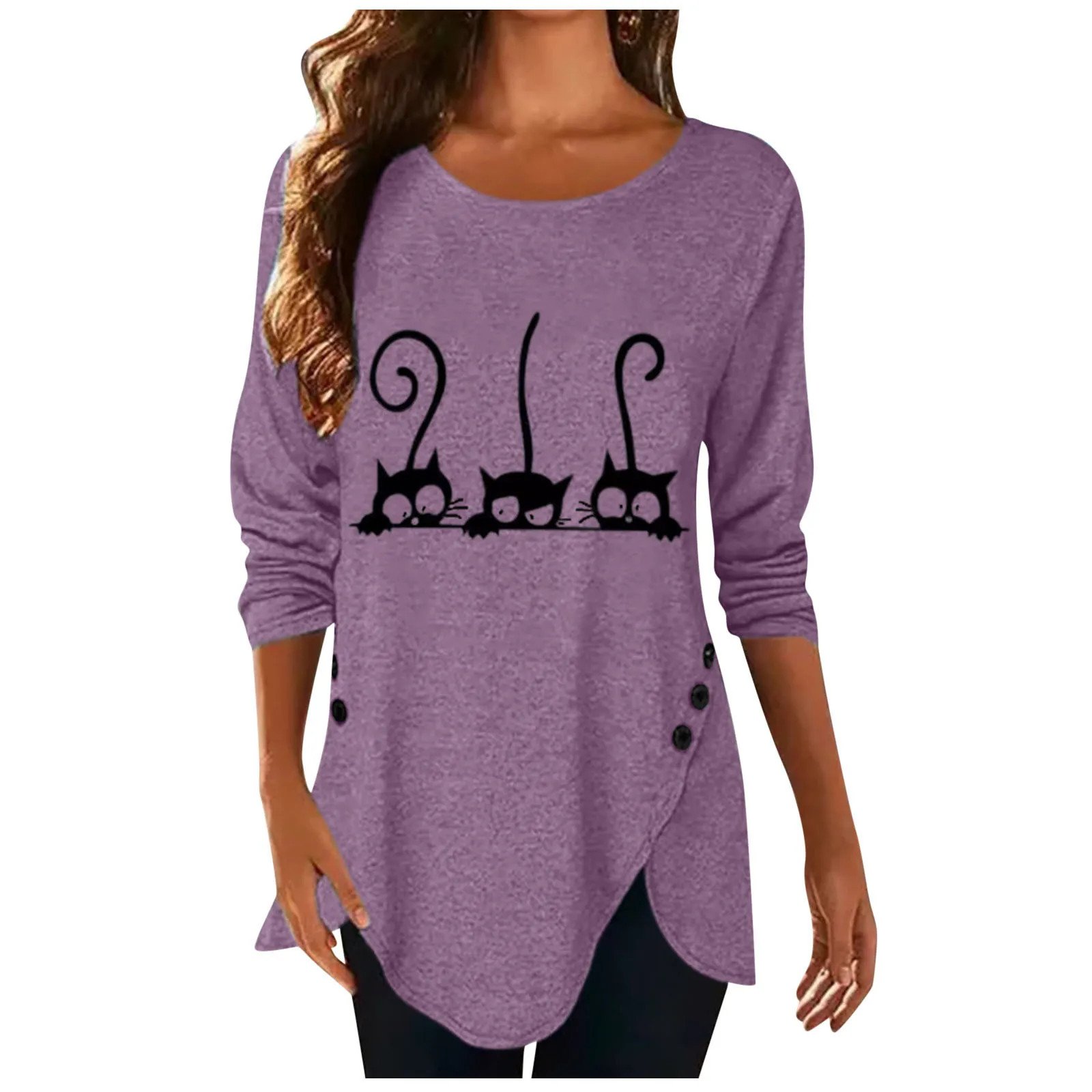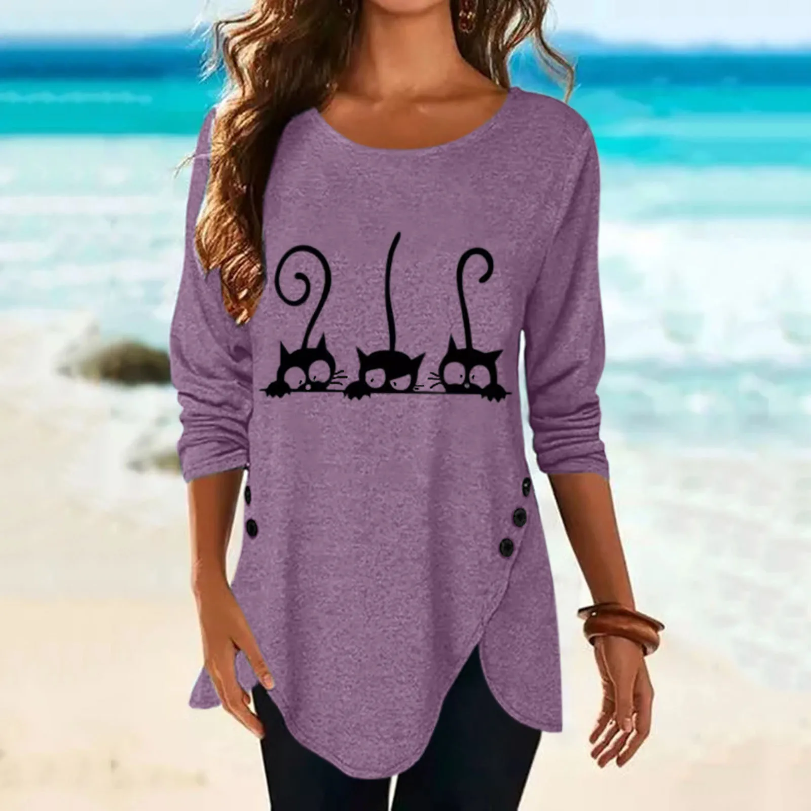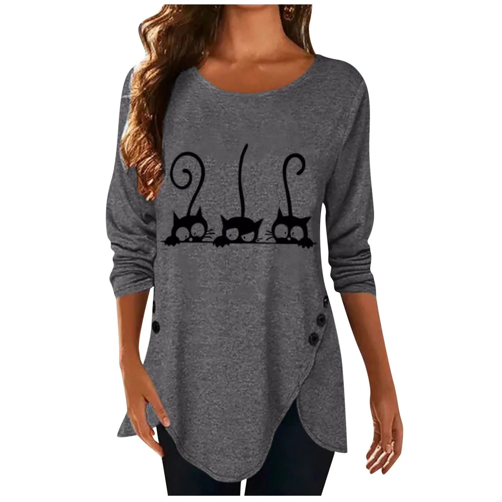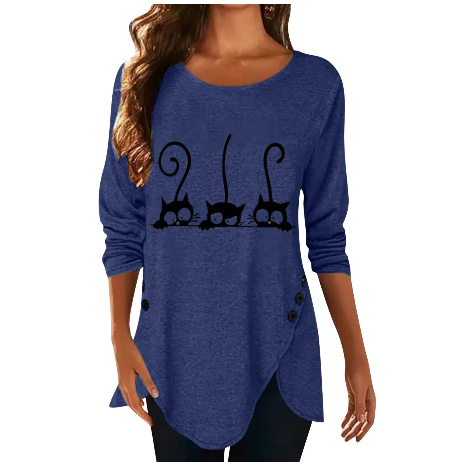 Женская мода Csts Печать Свободный длинный рукав топы Повседневная рубашка
