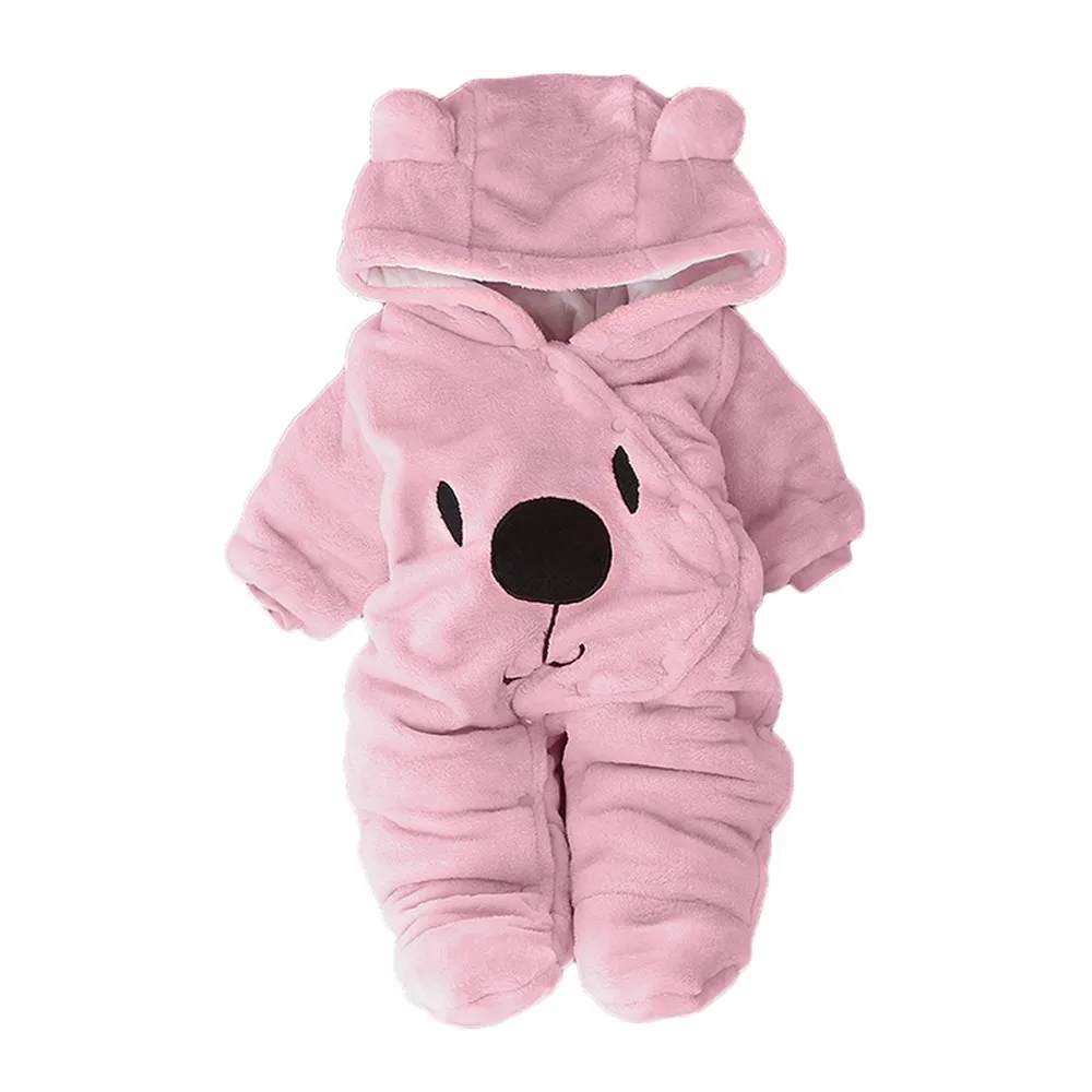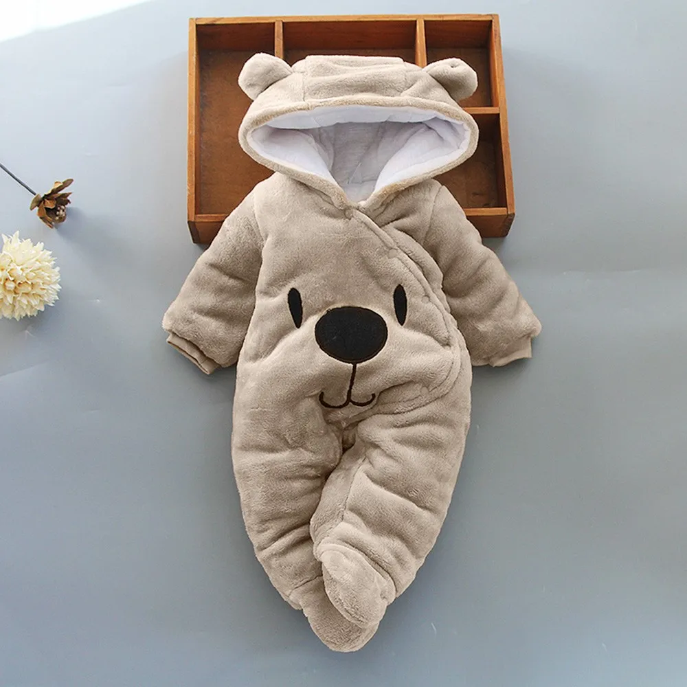 Однотонный бархатный с капюшоном и мультяшным медведем для новорожденных девочек и мальчиков комбинезоны детские одежда