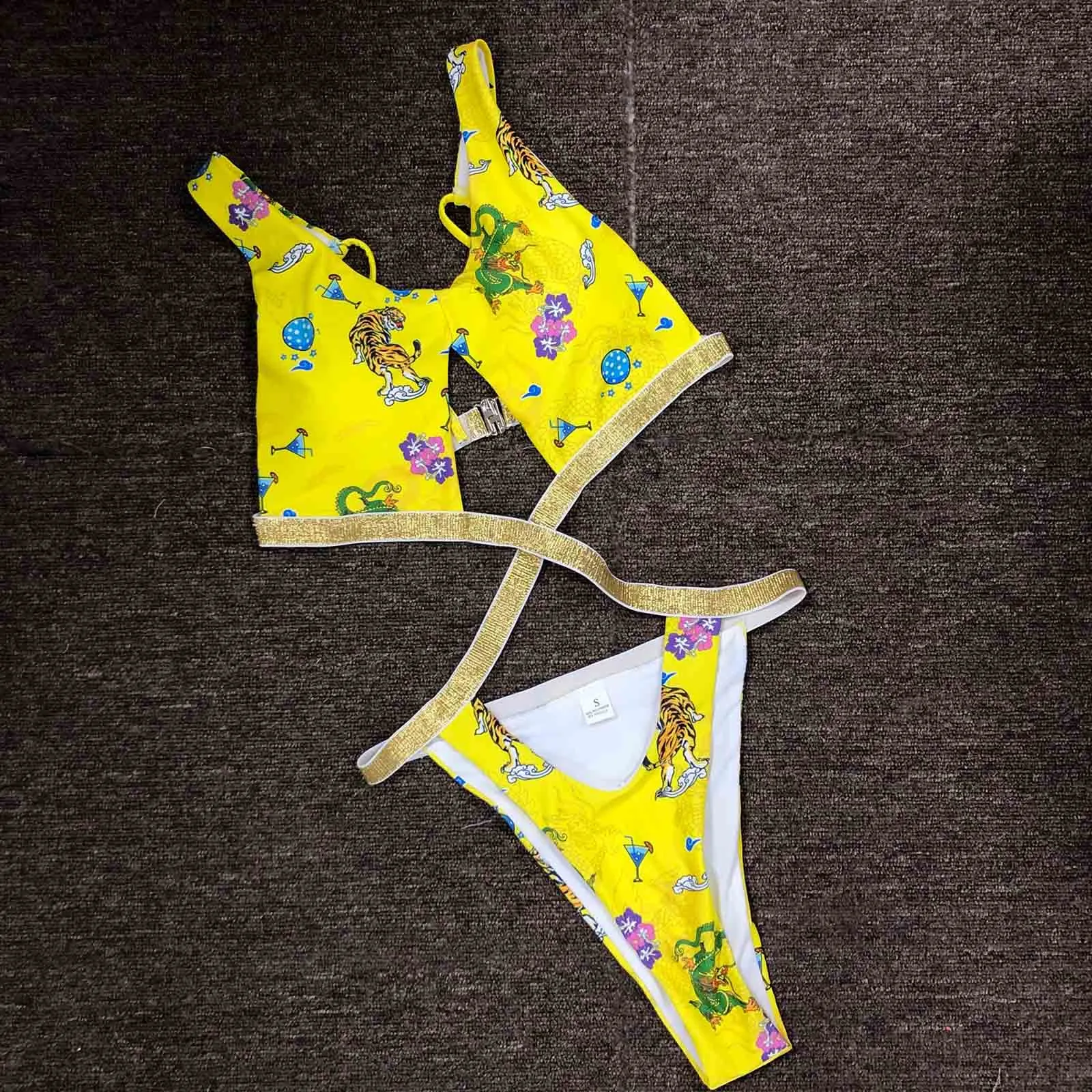 Женский бразильский купальник-бикини с китайским принтом дракона