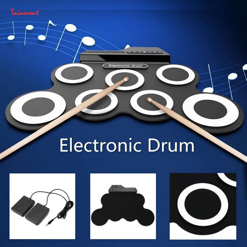 7 колодок, набор электронных барабанов с гнездом для наушников, встроенный динамик, барабанная палочка, электрический барабан, праздничный портативный инструмент, подарок