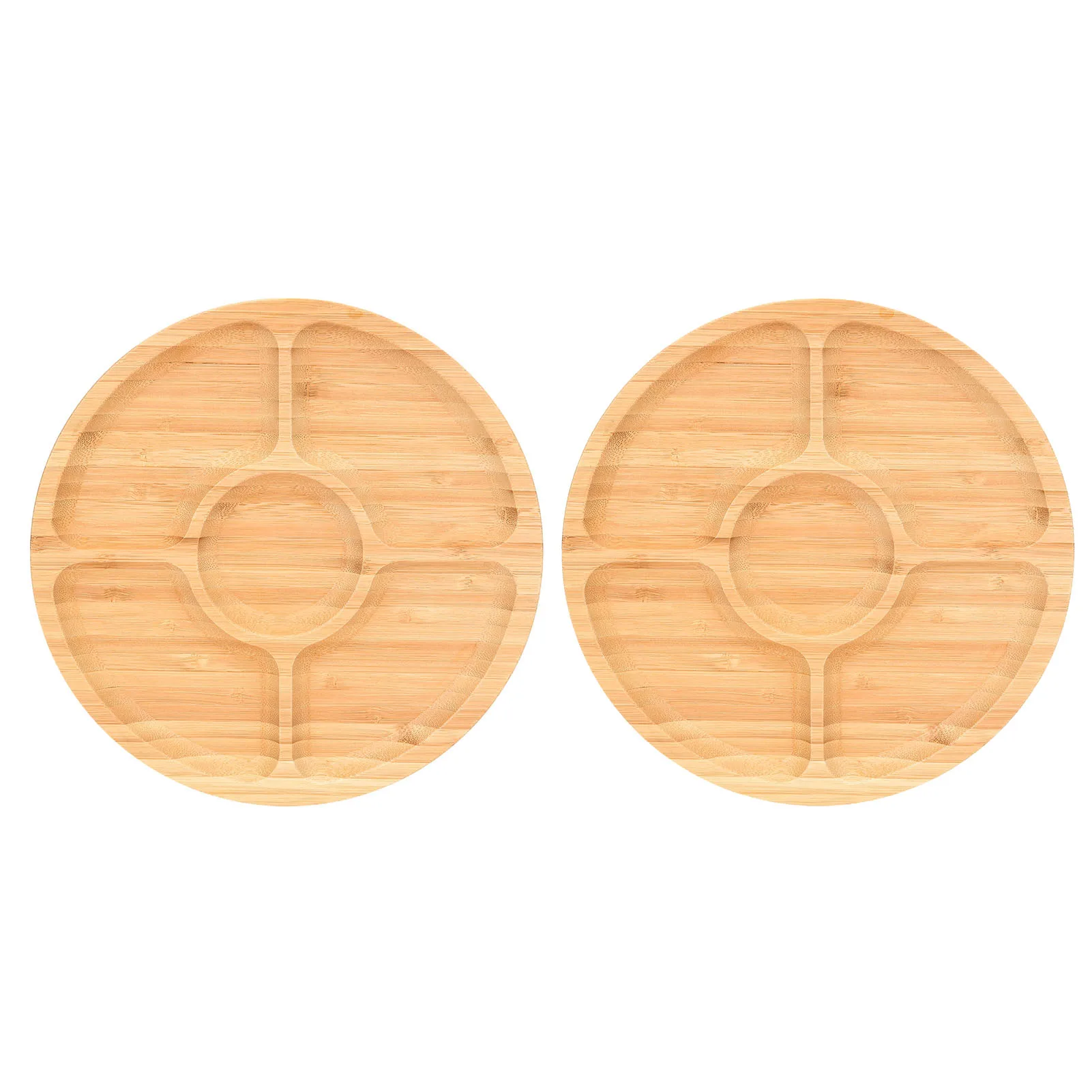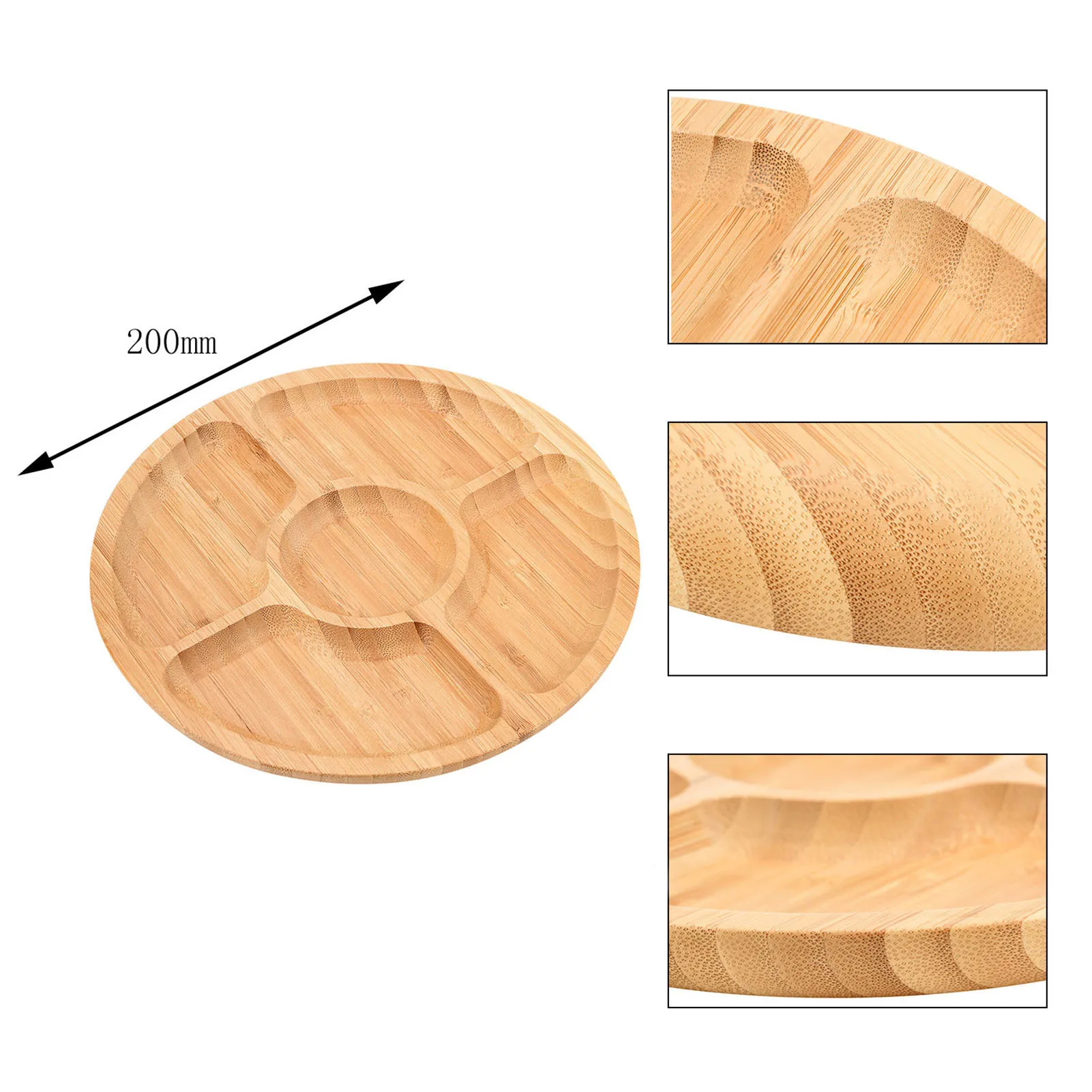 Тарелка деревянная круглая, с 5 отделениями, для фруктов и орехов, закусочный хлеб