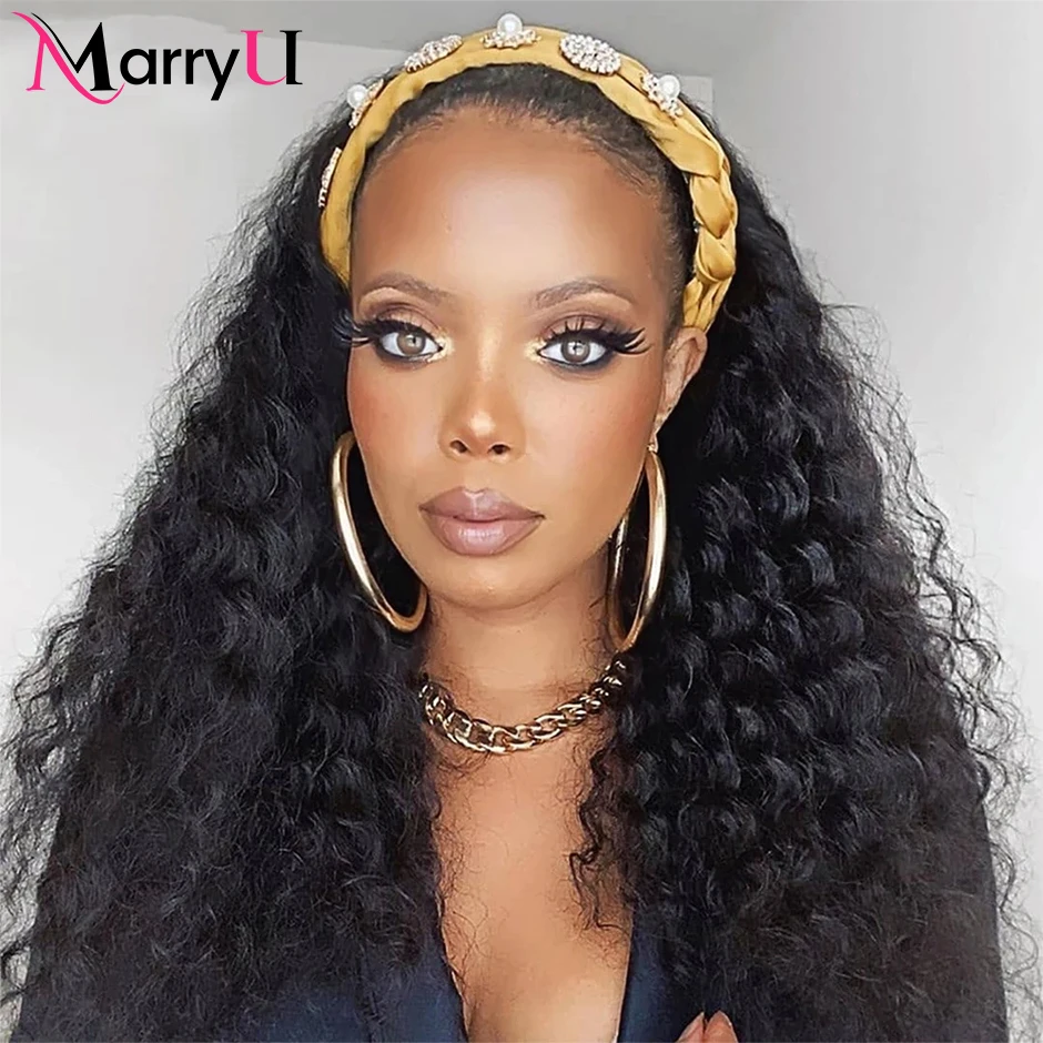 Бразильская глубокая волна парик с головной повязкой натуральный Цвет 180% плотность человеческих волос синтетические волосы глубокая волна человеческих волос парики манекен для шарфа парика для Для женщин