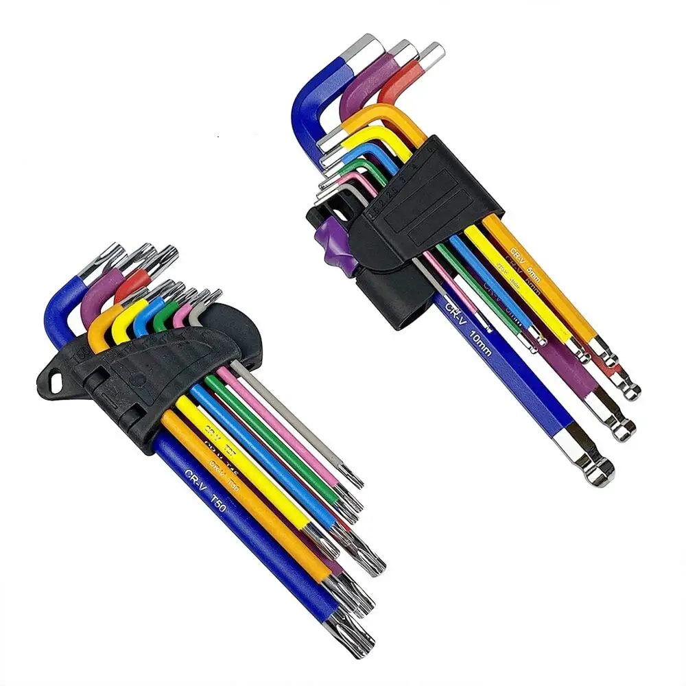 Набор шестигранных ключей 1,5-10 мм, 9 шт., с цветовой кодировкой, шестигранныезвездообразные L-образные гаечные ключи, метрические отвертки