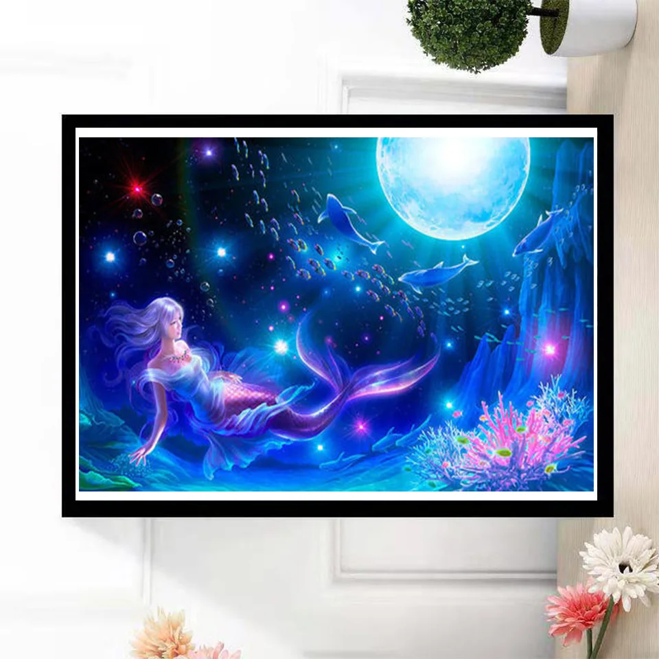Набор для алмазной вышивки сделай сам, квадратные алмазные Стразы 5D с русалочкой, вышивка крестиком, мозаика с бриллиантовой вышивкой подарок