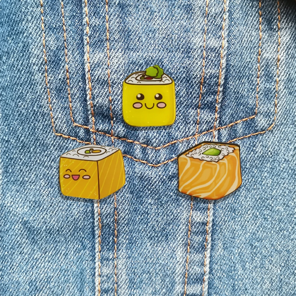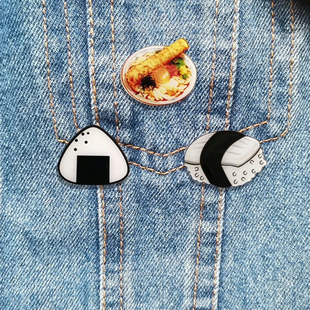 Модная акриловая брошь на рубашку, винтажные булавки, милые ювелирные изделия в японском стиле, суши, риса, пряжка для шарфа, новогодний подарок, Рождество