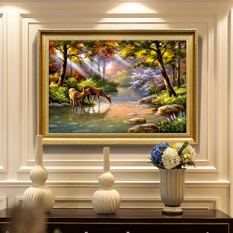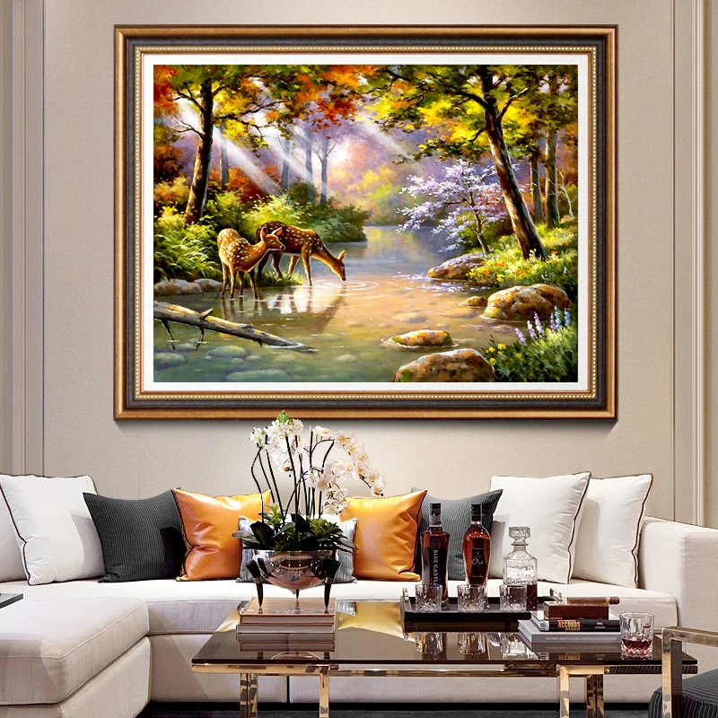 Набор для рукоделия, вышивка крестом с изображением оленя, живописный Декор для дома, картина маслом с изображением леса