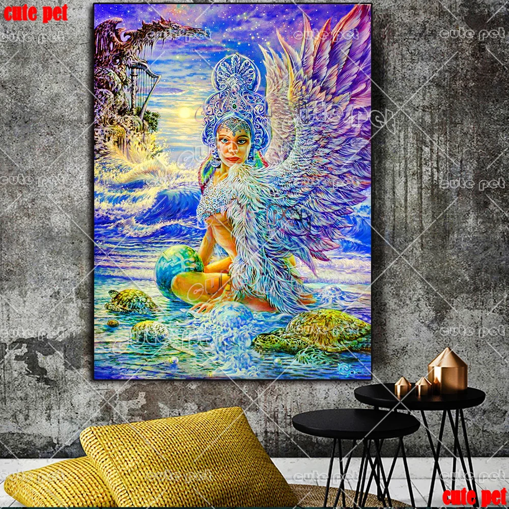 Алмазная живопись 5d сделай сам, вышивка с ангелом, Фэнтезийный морской Бог, женщина, мультяшное алмазное искусство, полная мозаика ручной работы, подарок для детской комнаты