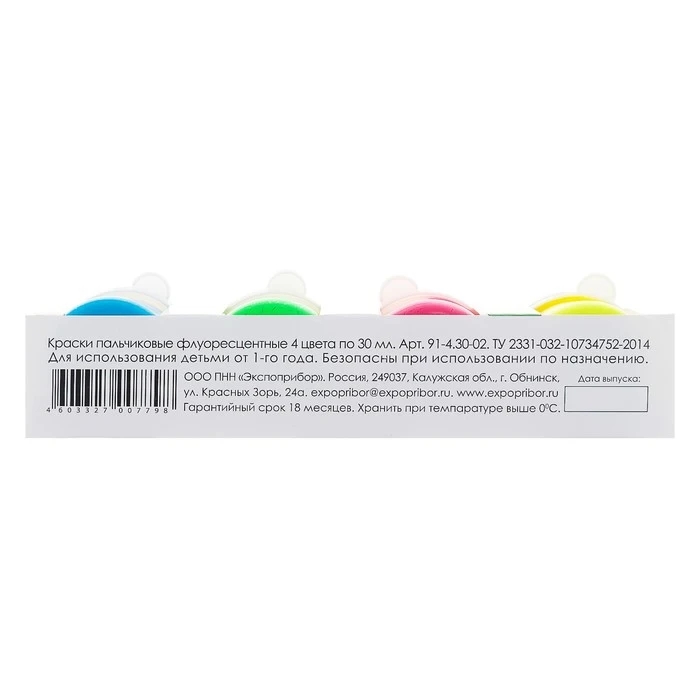 Краски пальчиковые, набор 4 цвета x 30 мл, Азбука цвета, флуоресцентные