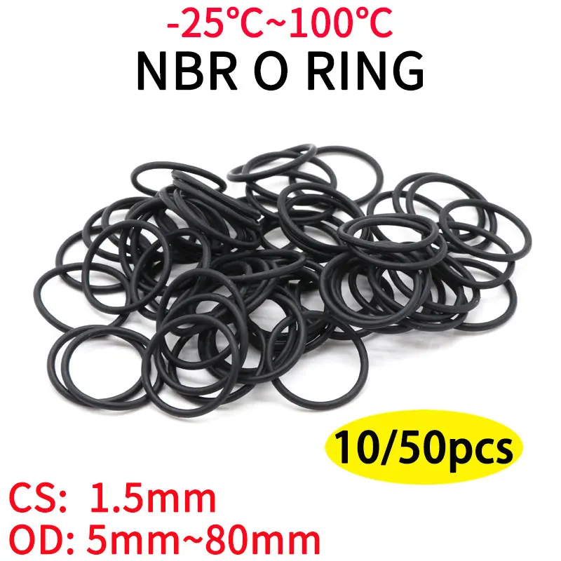 Уплотнительное кольцо NBR, 10 шт., уплотнительная прокладка, толщина CS 1,5 мм, внешний диаметр 5 80 мм, нитриловая бутадиеновая резиновая прокладка, шайба с маслостойкостью, круглая черная форма