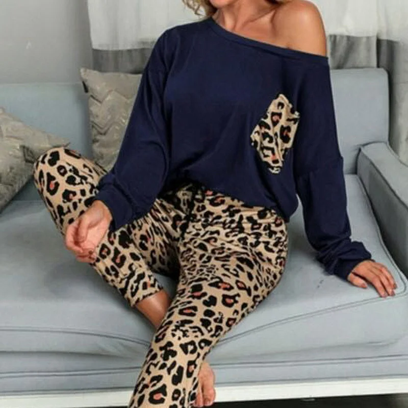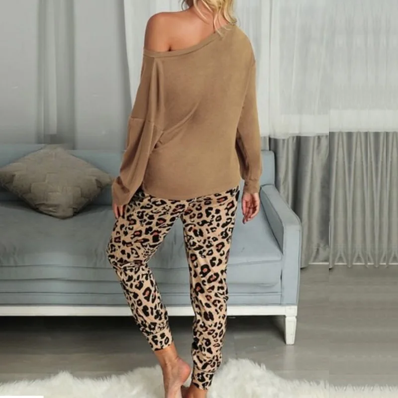 Женские леопардовые костюмы для дома, Осенние повседневные футболки и спортивные штаны на шнуровке, одежда для отдыха, модные пижамные комплекты, эластичная одежда для сна, 2021
