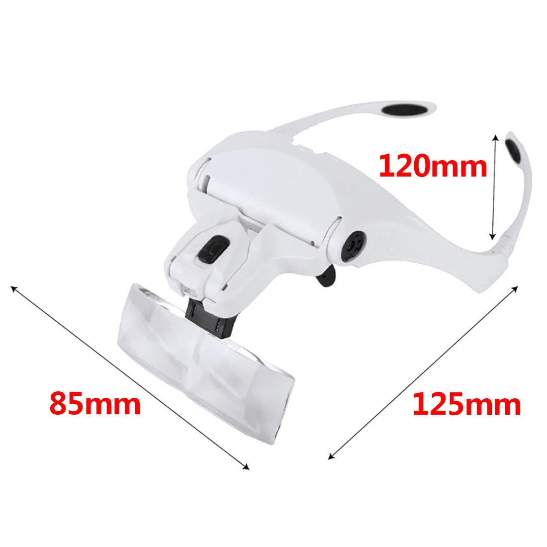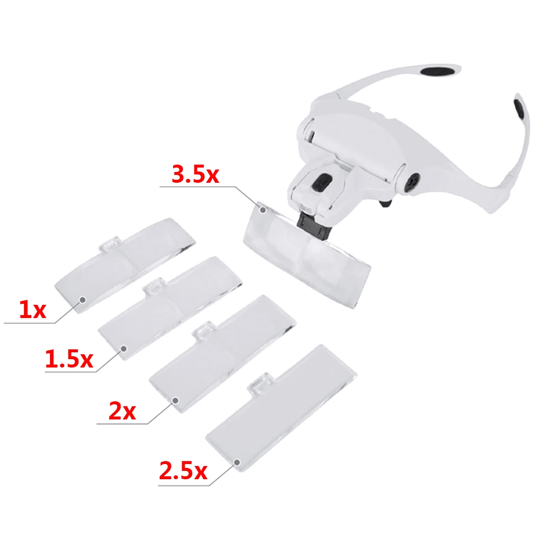 Увеличительные очки, Регулируемые светодиодные очки с 5 линзами 1.0X 1.5X 2.0X 2.5X 3.5X