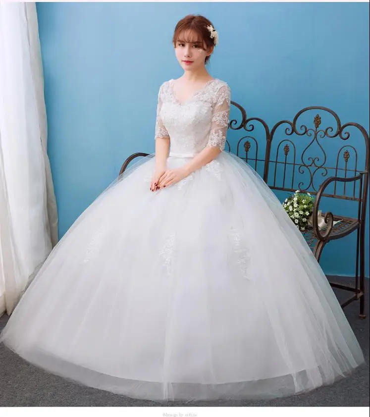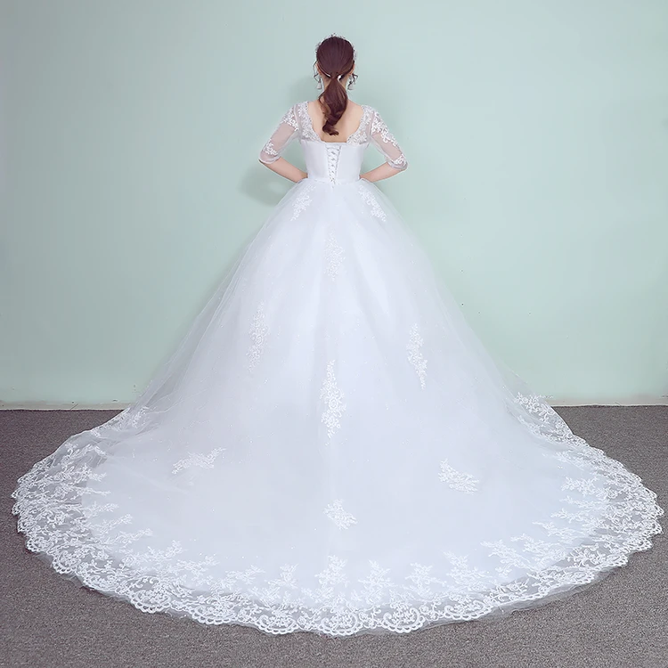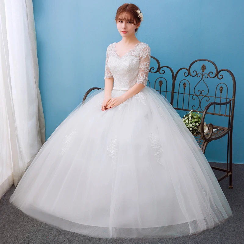 Женское свадебное платье с V-образным вырезом, элегантное винтажное бальное платье принцессы с вышивкой и шлейфом 1 м, 2021